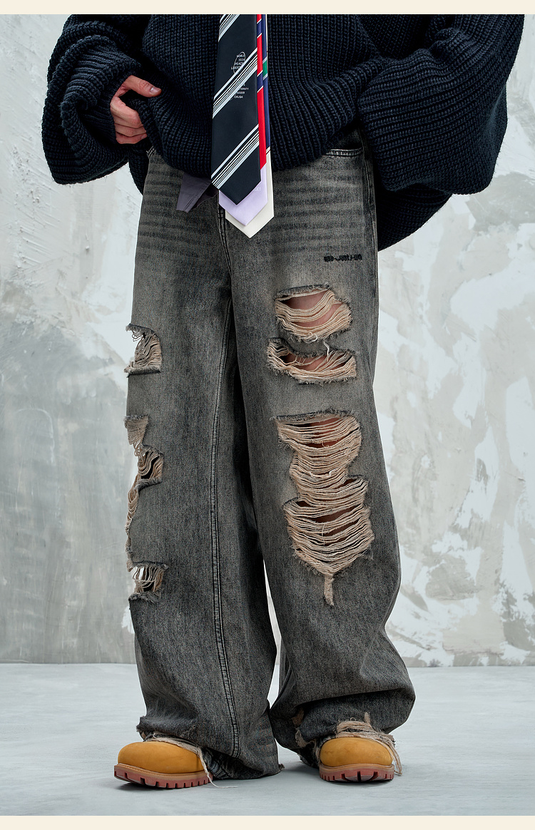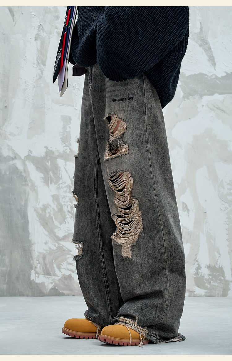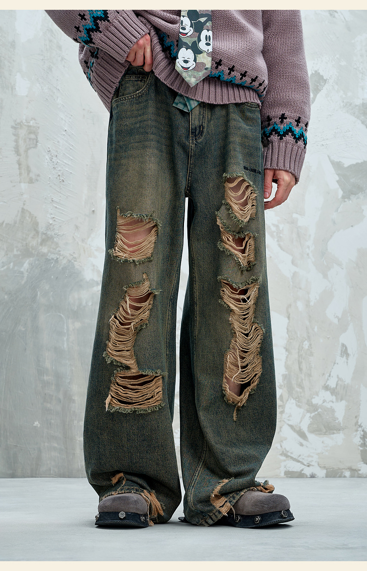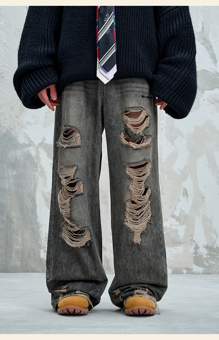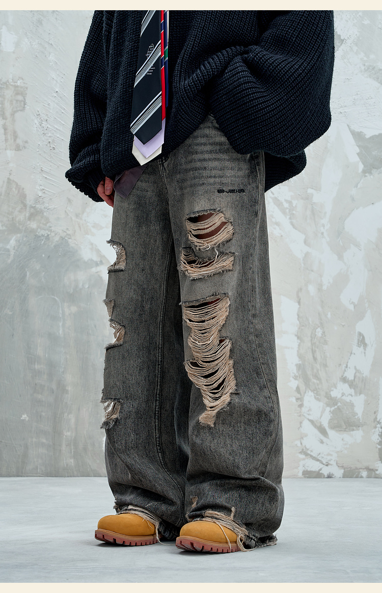 BJHG不计后果美式牛仔裤男款秋季2025新款休闲破洞潮流直筒长裤女