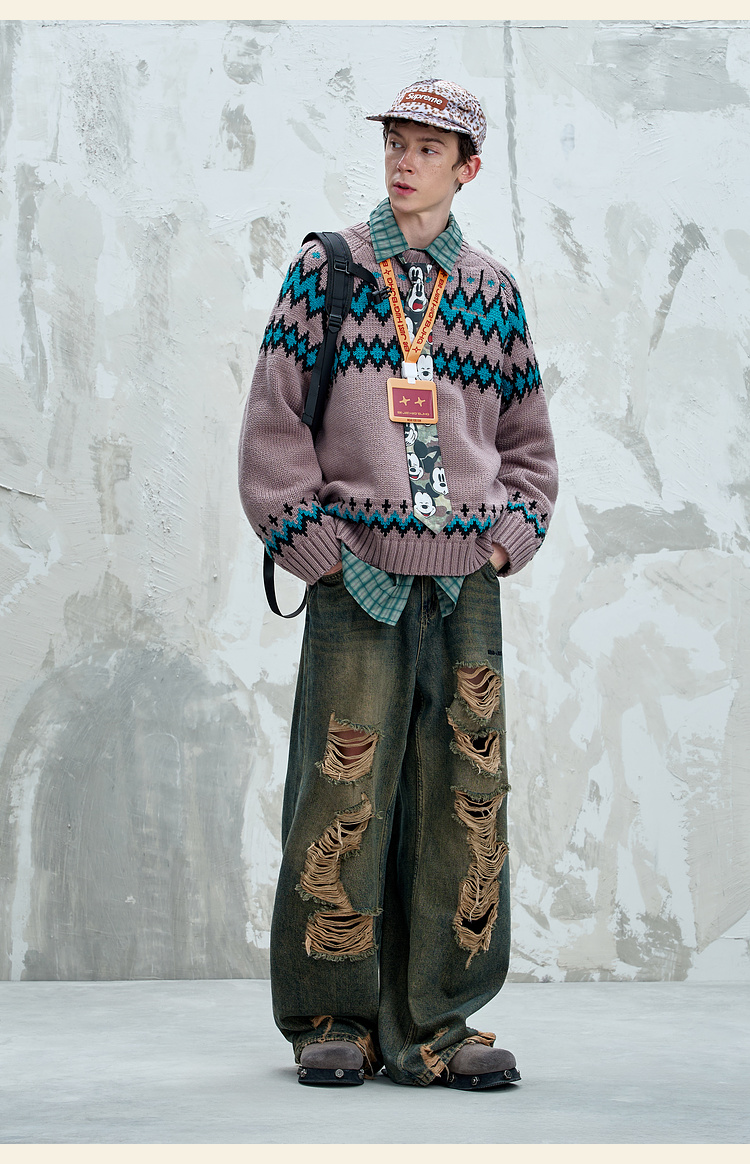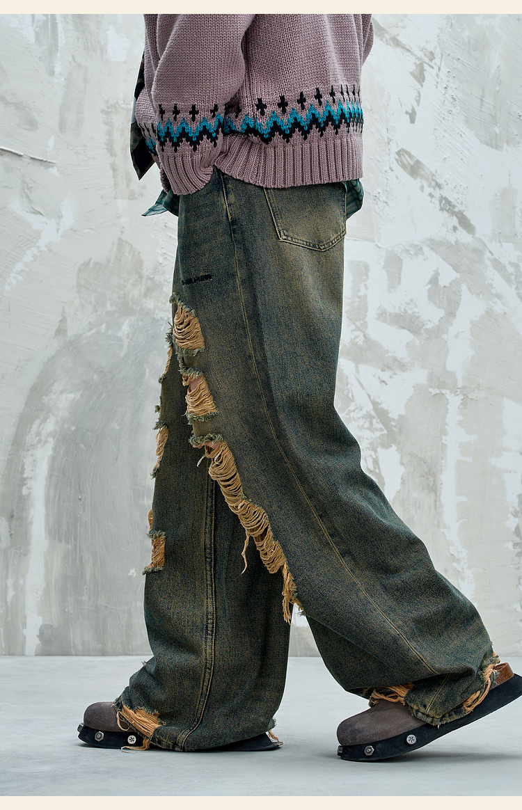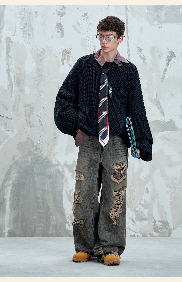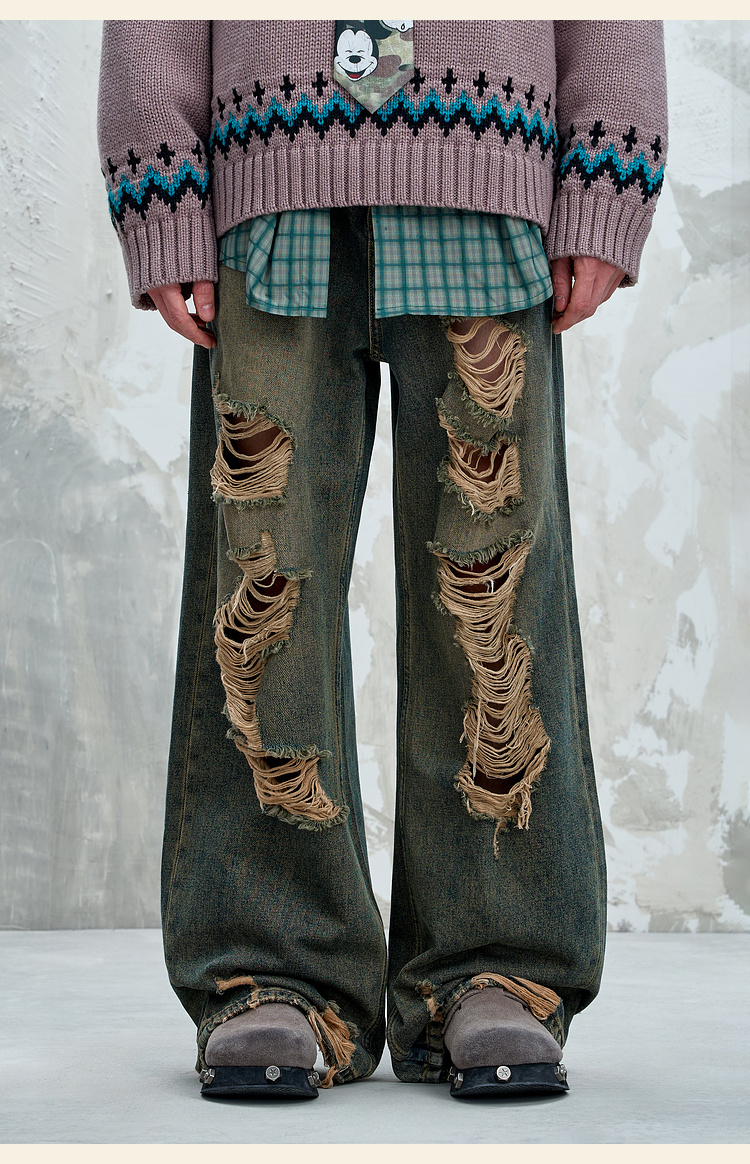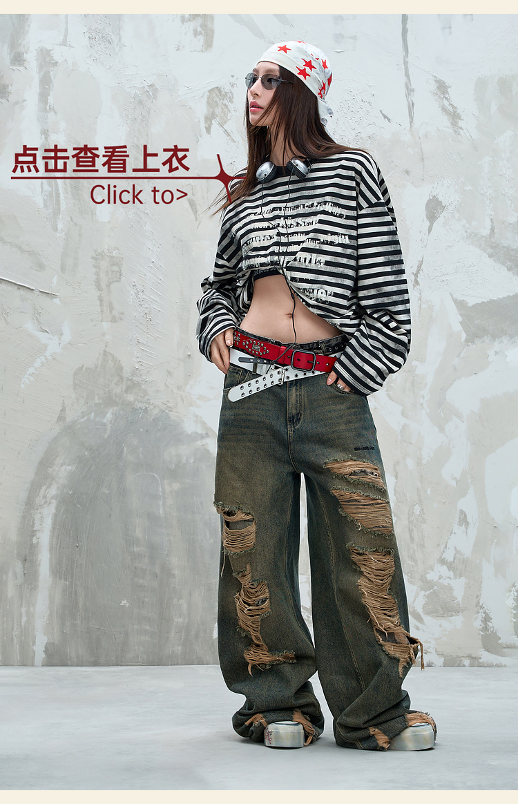 BJHG不计后果美式牛仔裤男款秋季2025新款休闲破洞潮流直筒长裤女