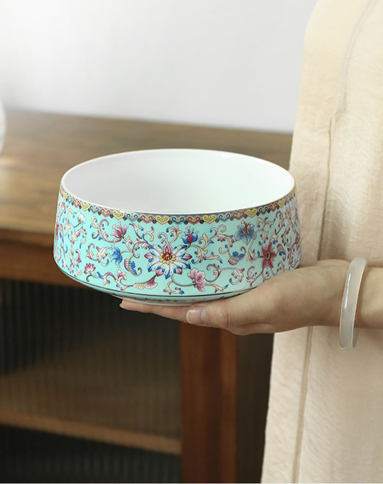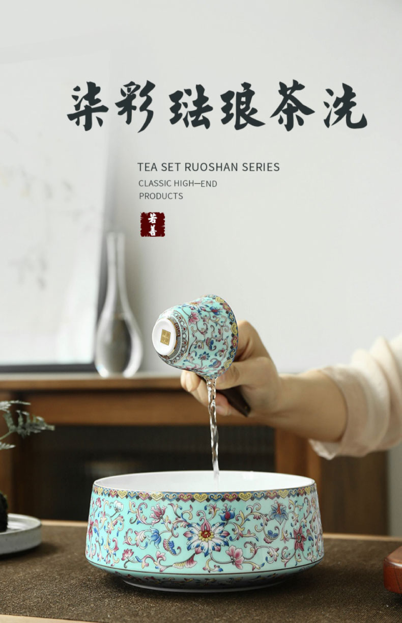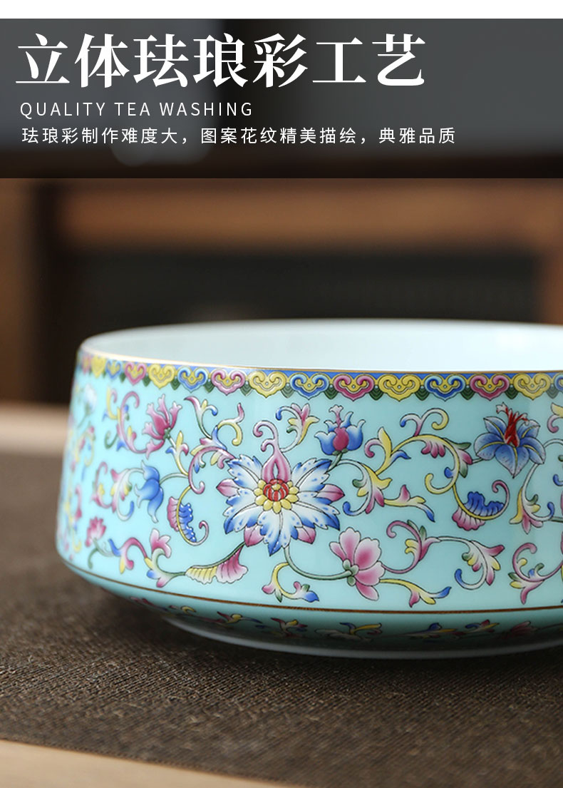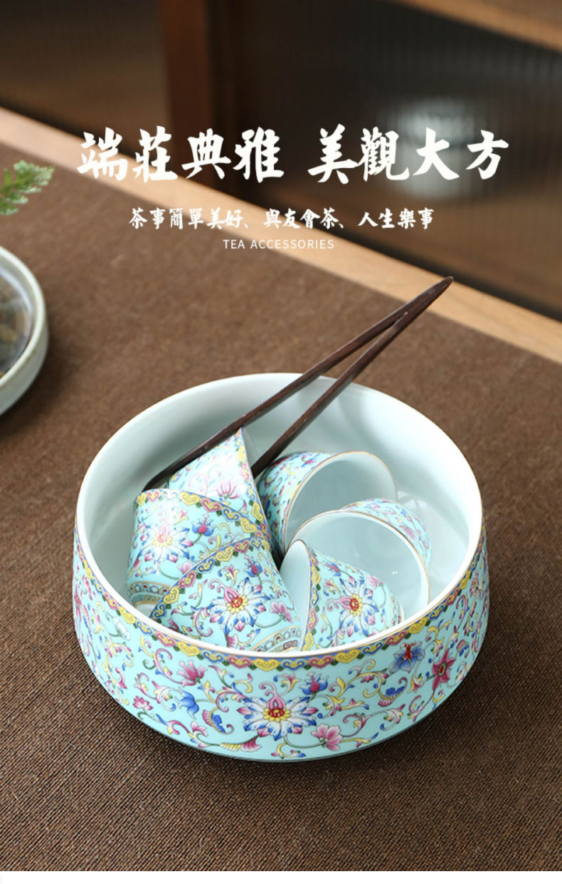 陶瓷柒彩珐琅/纳福茶洗 家用笔洗缸茶洗缸建水水盂茶渣缸中式茶具配件