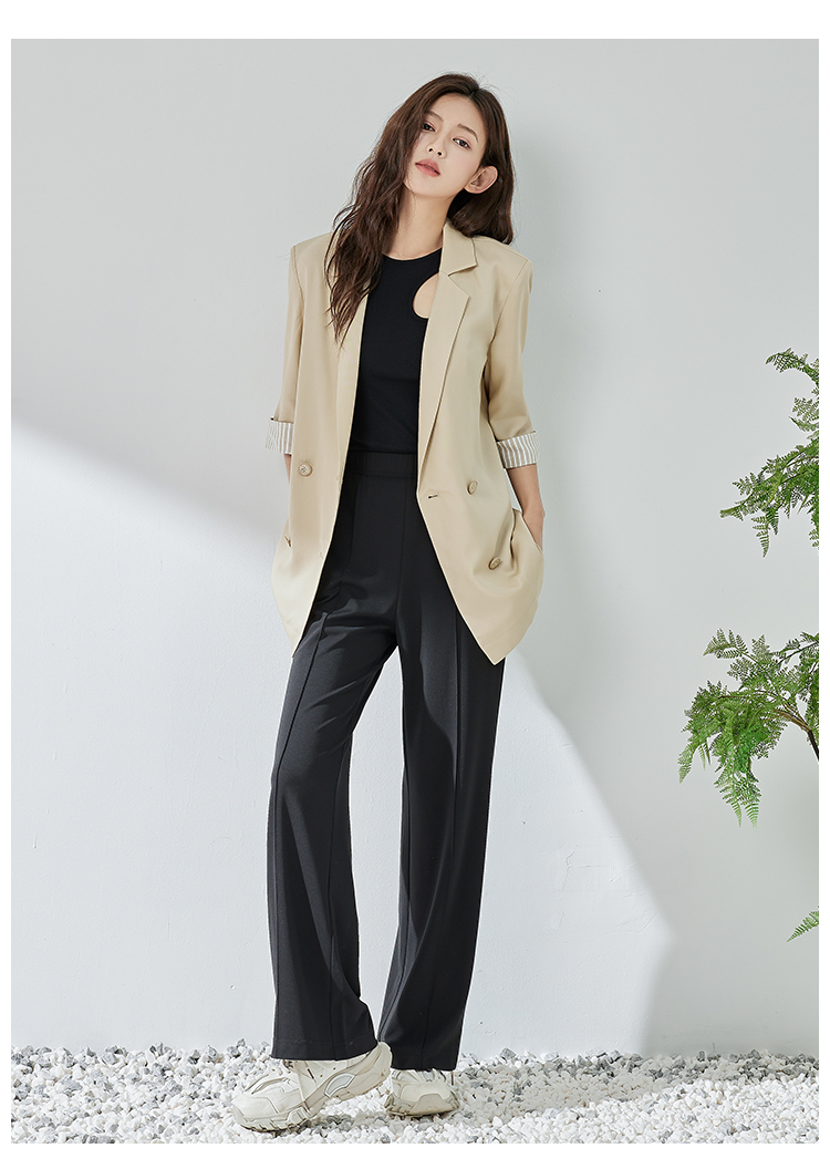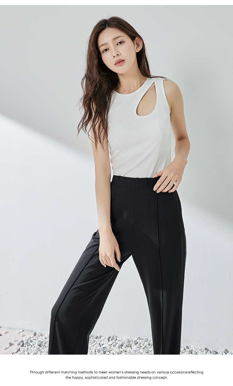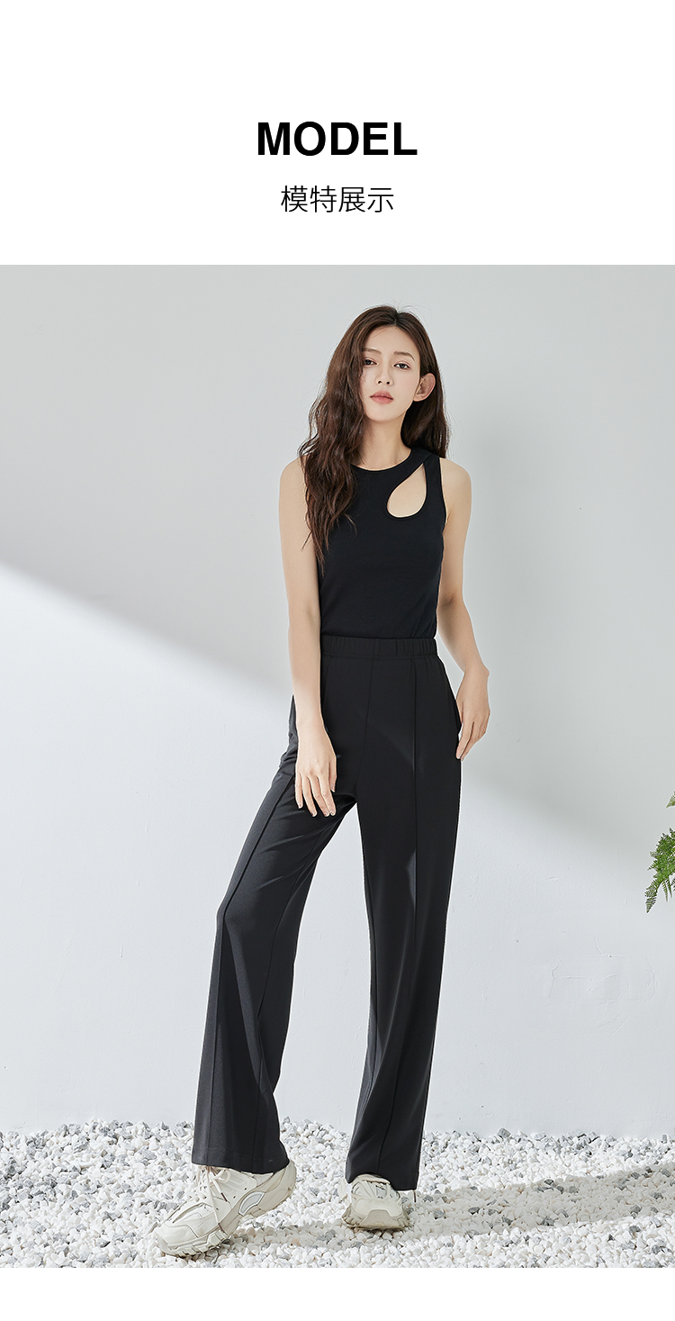oldcolour欧珂夏季纯色抽绳弹力松紧腰休闲阔腿裤女P25073107