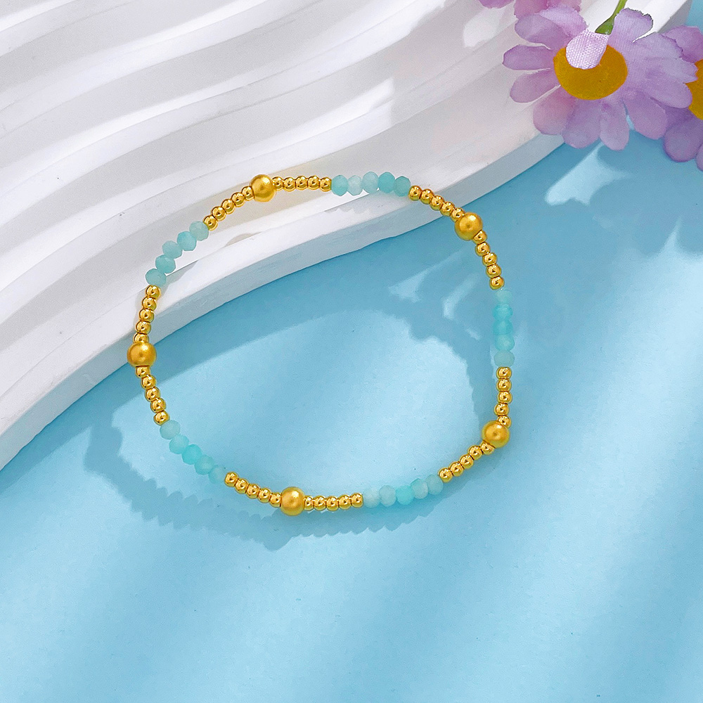 【限时7.5折】【定价黄金】足金 #清新 3D硬金空心转运金珠天河石刻面圆珠间款手串Diy叠戴弹力绳手串(金珠约2-2.4mm)(AK3DSC00045)预售产品下单后不退款不退货不换货不补差价