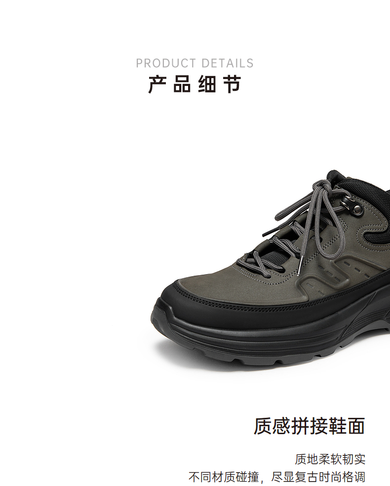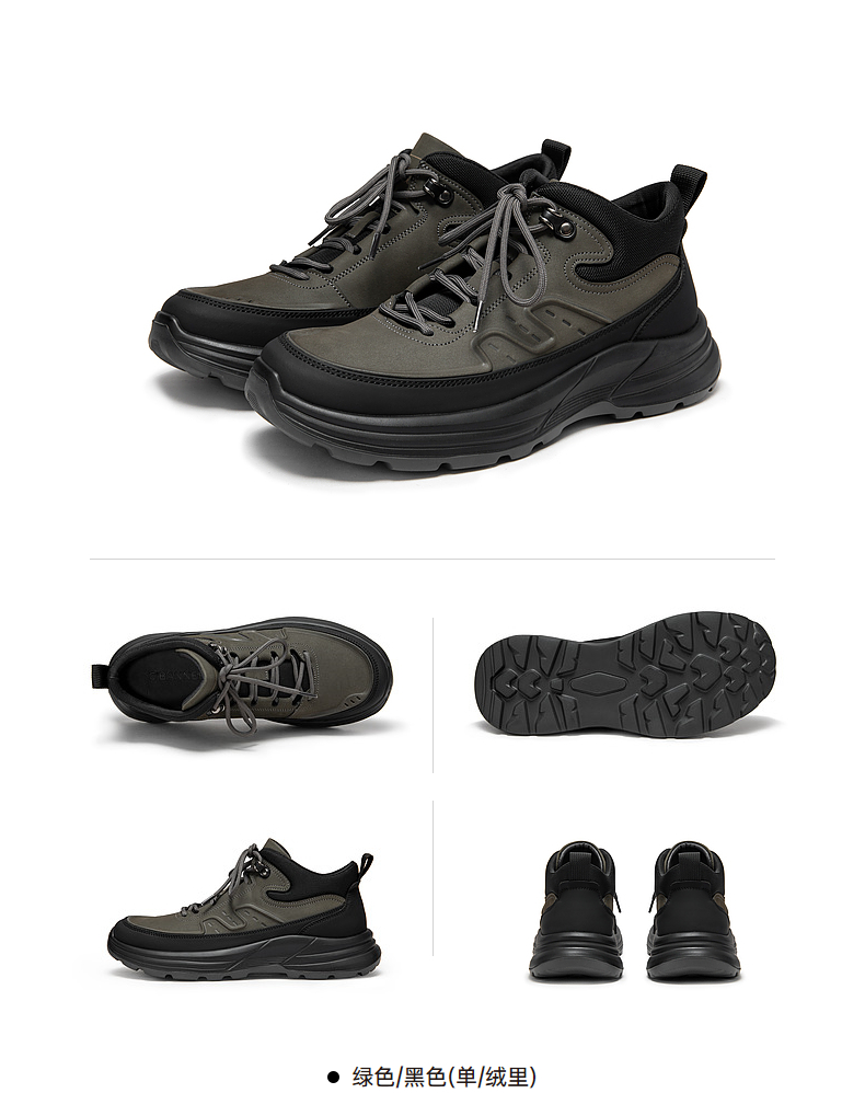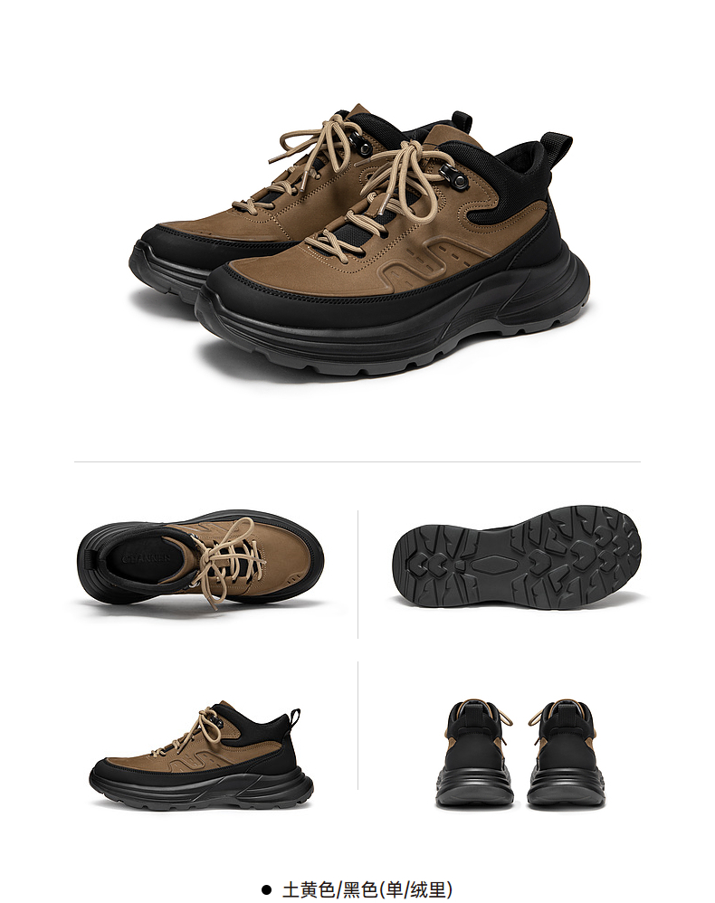 千百度男鞋户外厚底防滑工装鞋春季百搭增高加绒运动休闲鞋A24592111