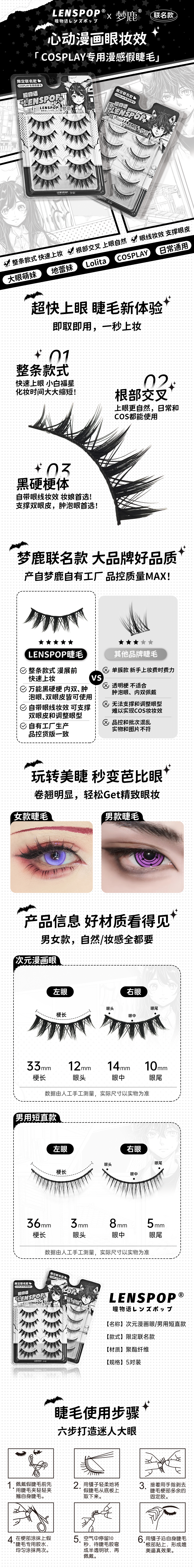 LENSPOP瞳物语✘梦鹿®️联名COS专用假睫毛上市 男女角色各一款 可+9.9换购
