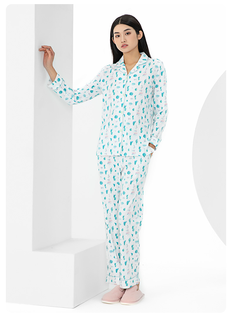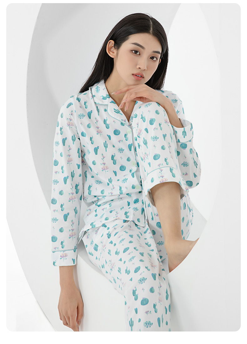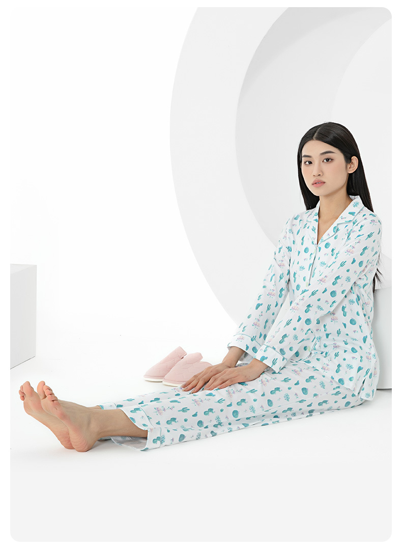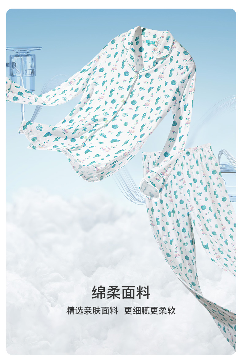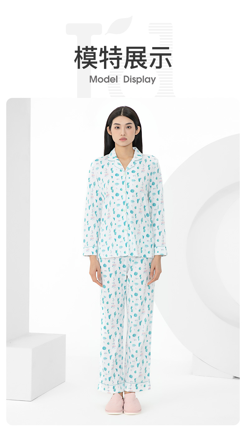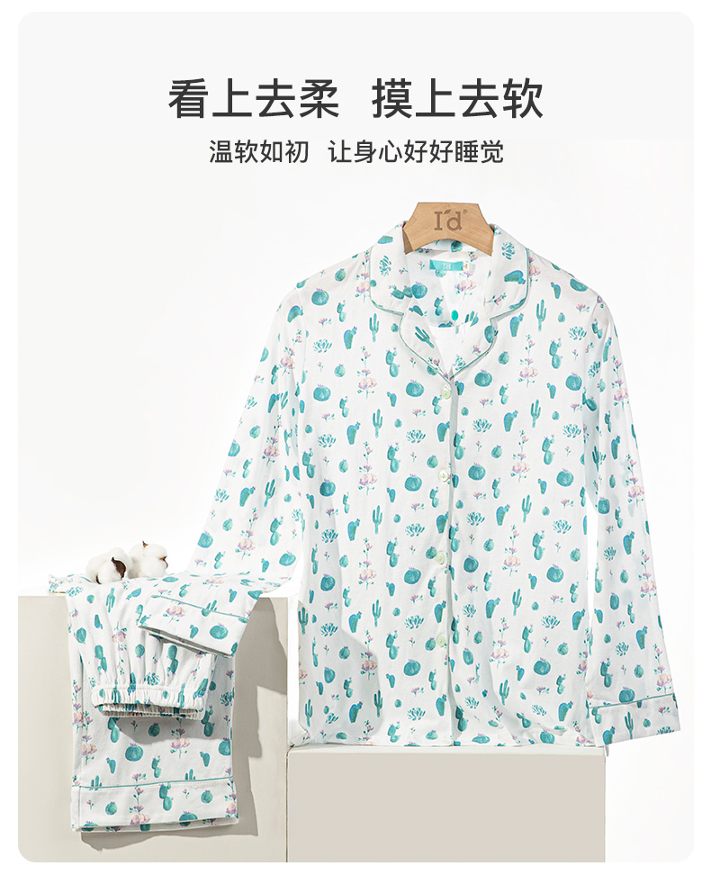 I'd爱帝女士纯棉仙人掌印花长袖居家服套装
