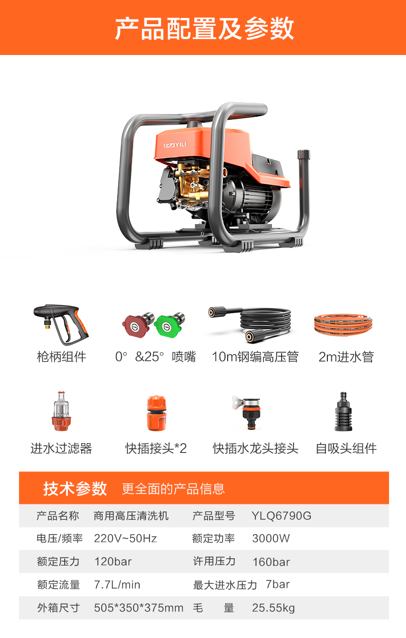 亿力商用洗车机大功率清洗机9026G水泵高压水枪强力洗地刷车神器家用