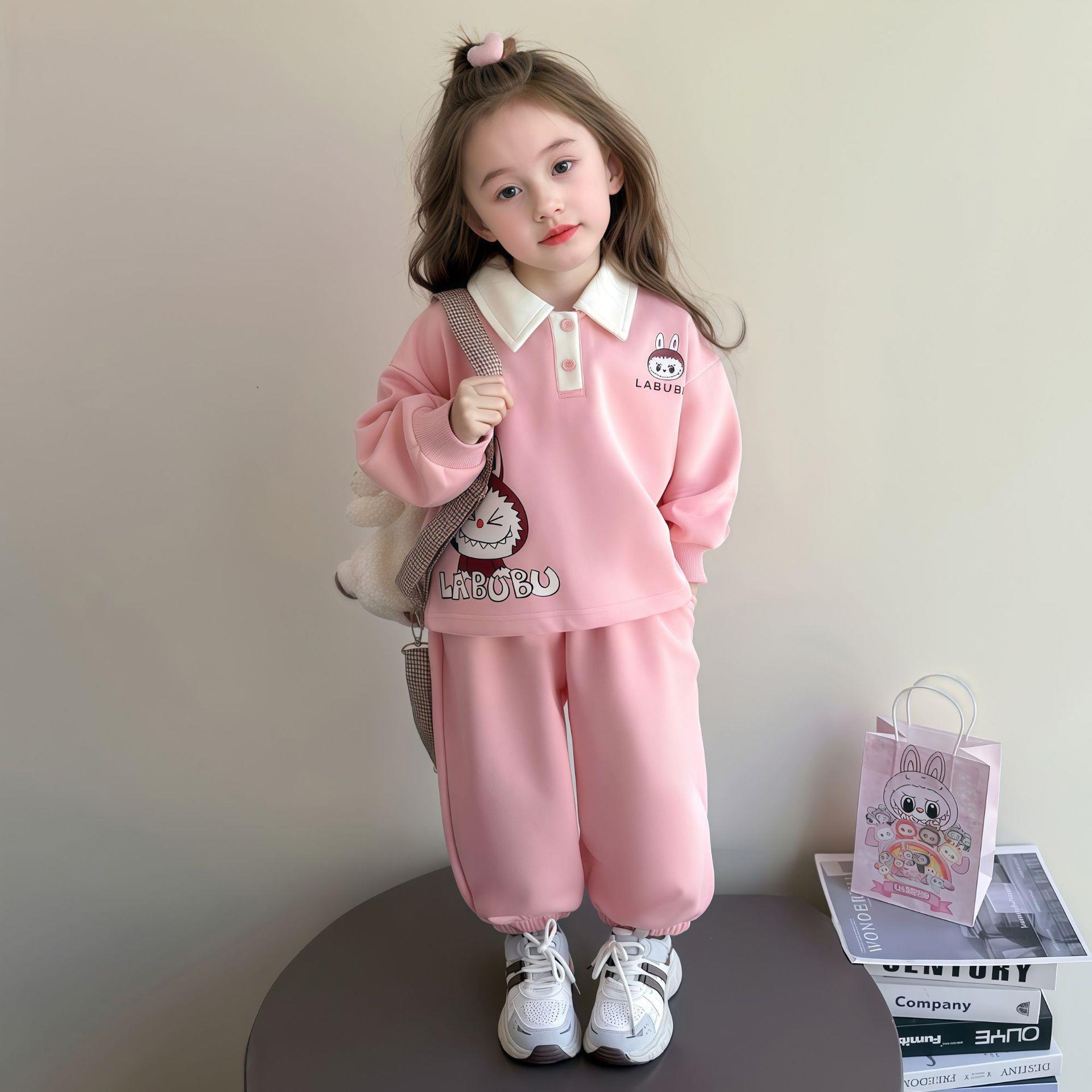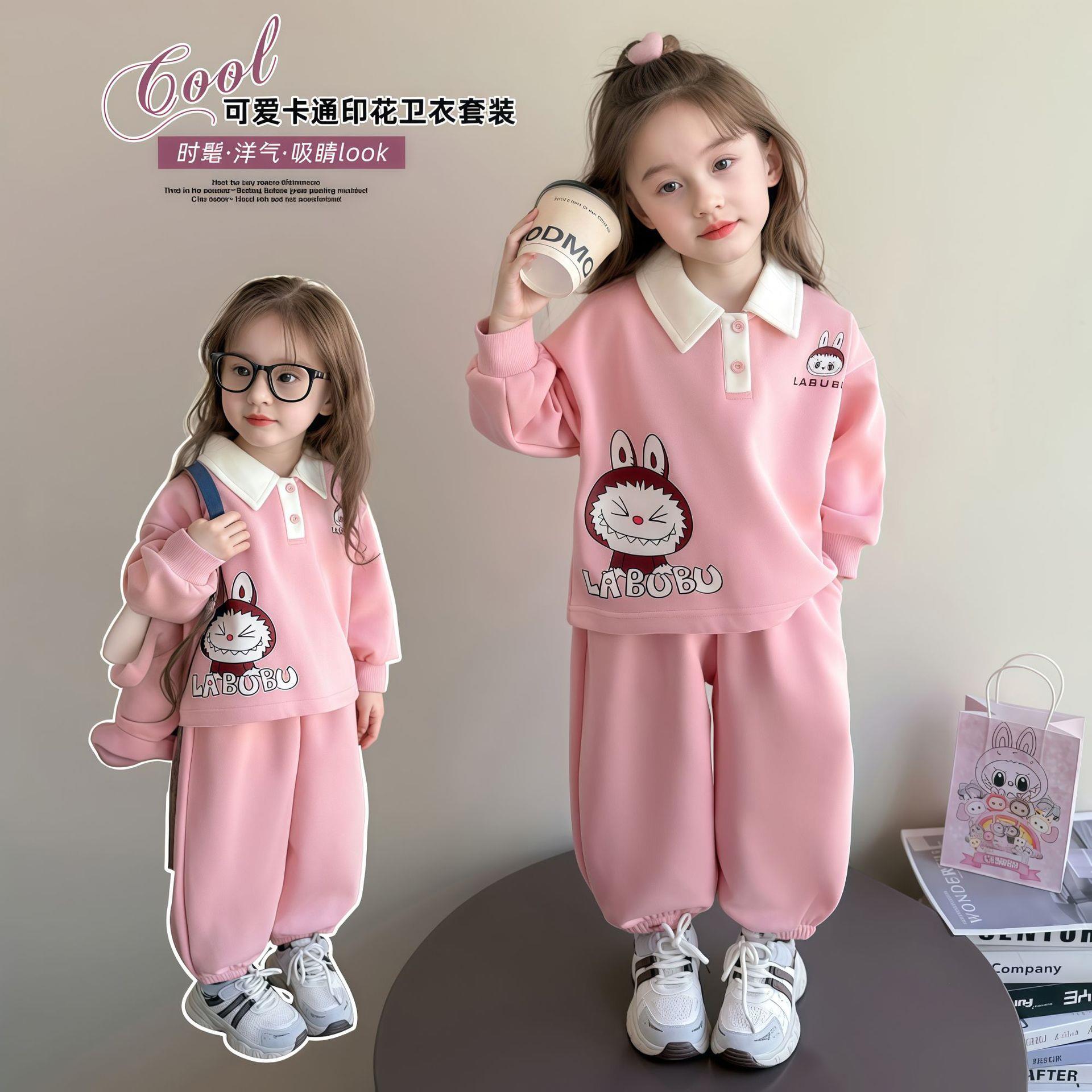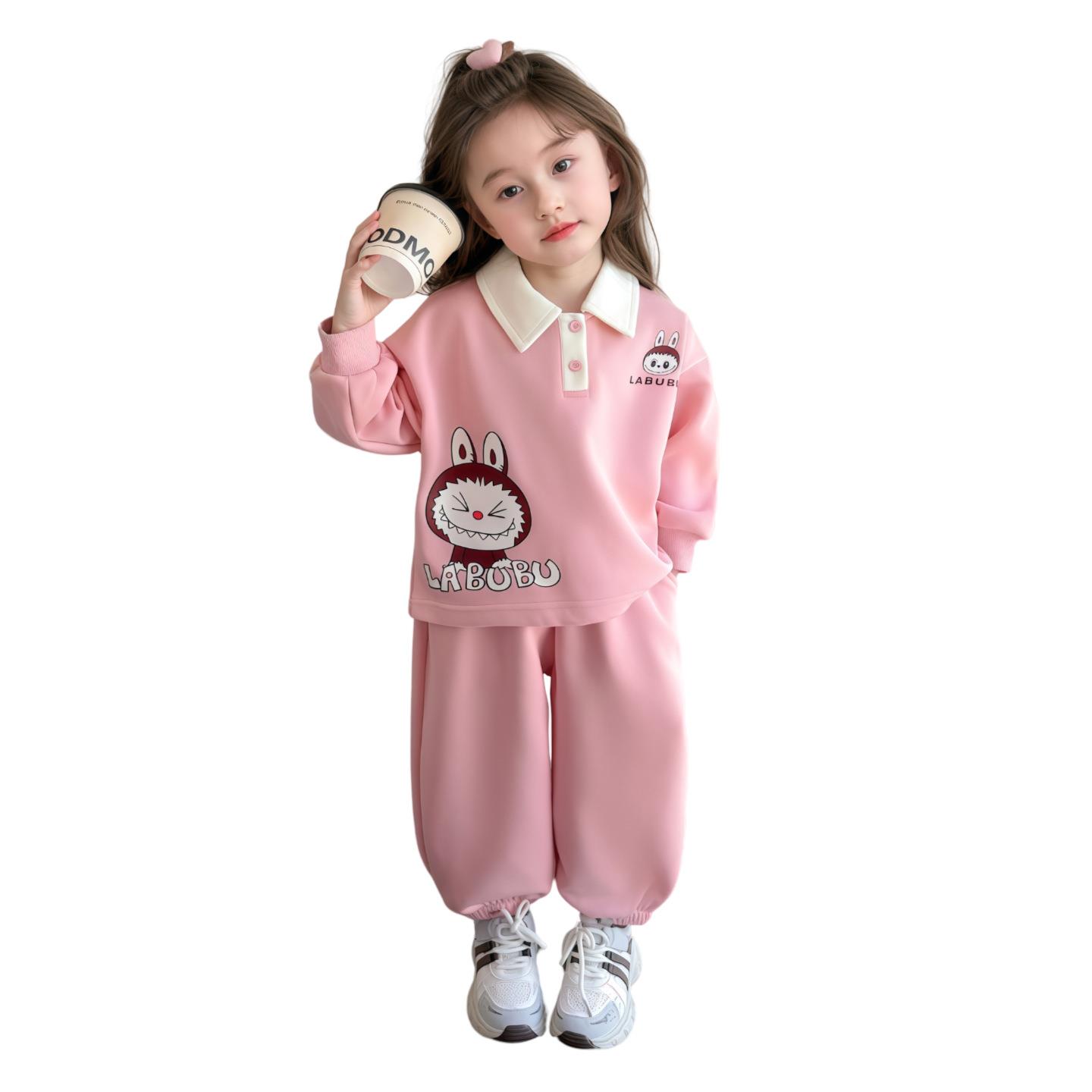 Laffey & Monkey女童卡通卫衣套装秋款小女孩翻领休闲运动两件套儿童长袖卡通Polo80-150★★★娃娃优选
