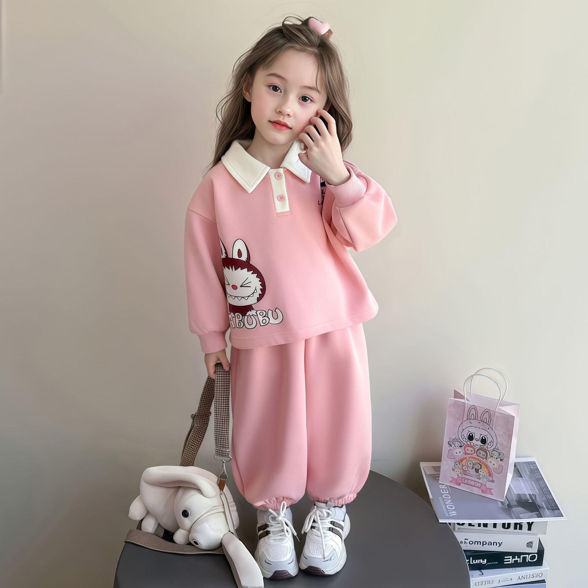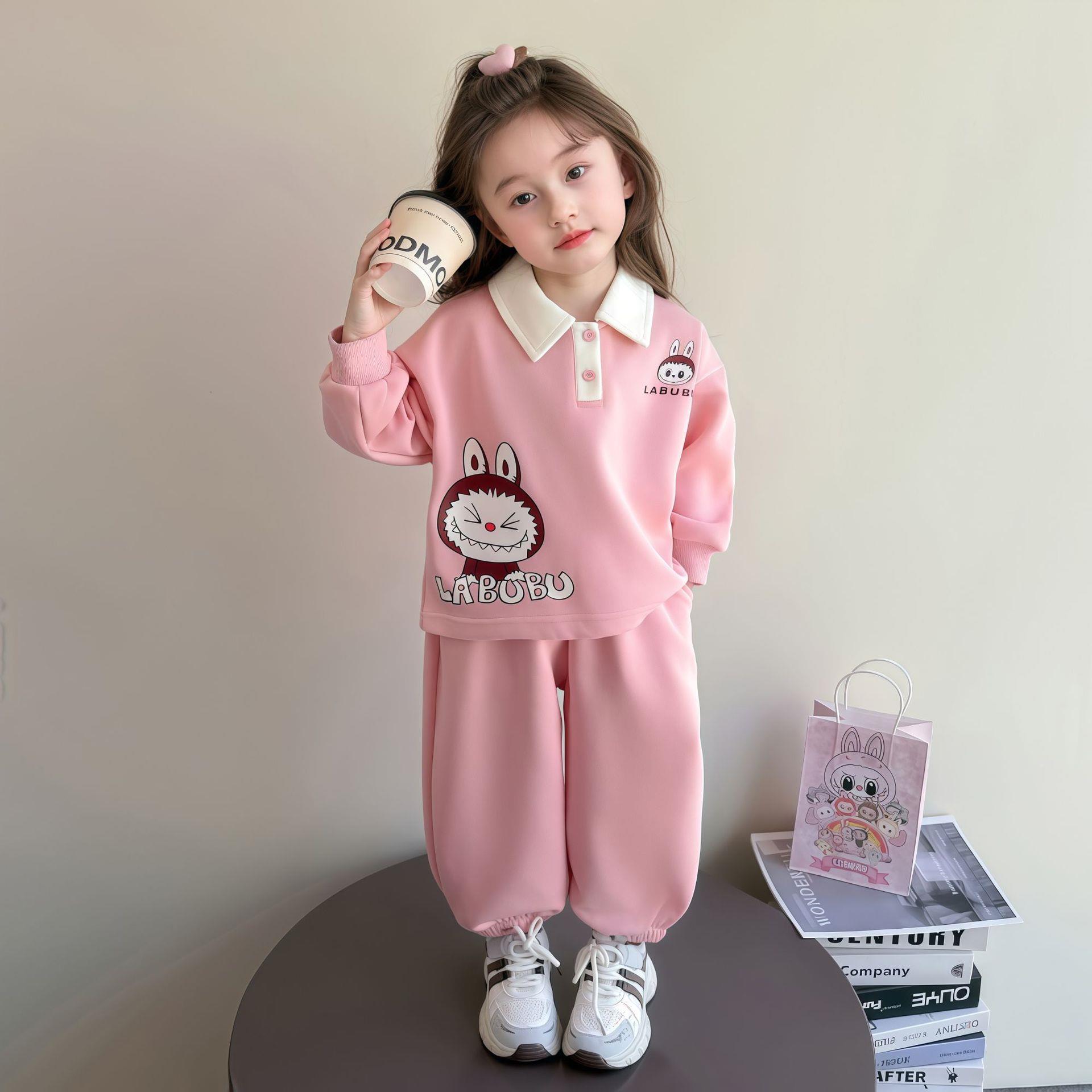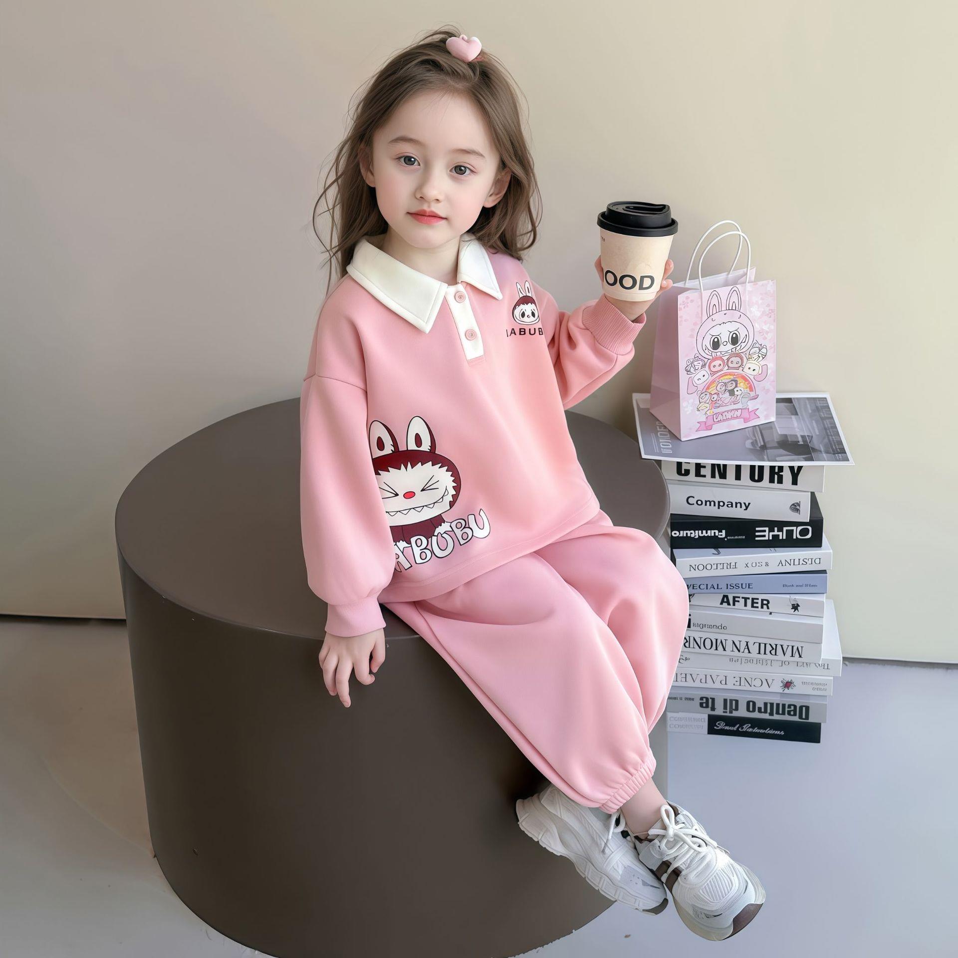 Laffey & Monkey女童卡通卫衣套装秋款小女孩翻领休闲运动两件套儿童长袖卡通Polo80-150★★★娃娃优选