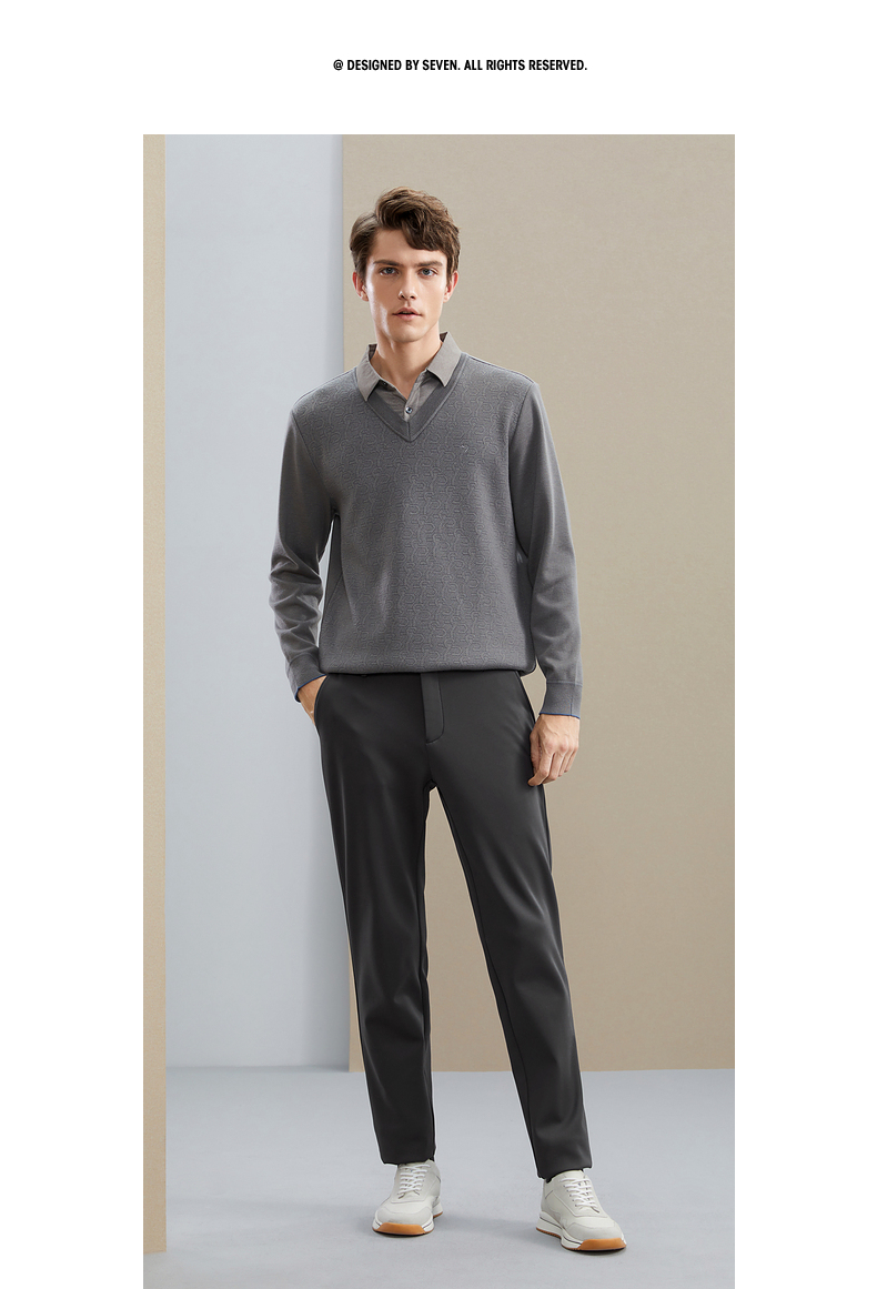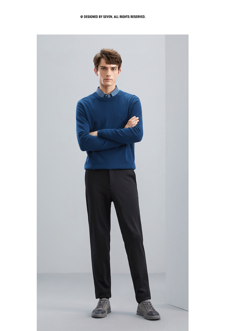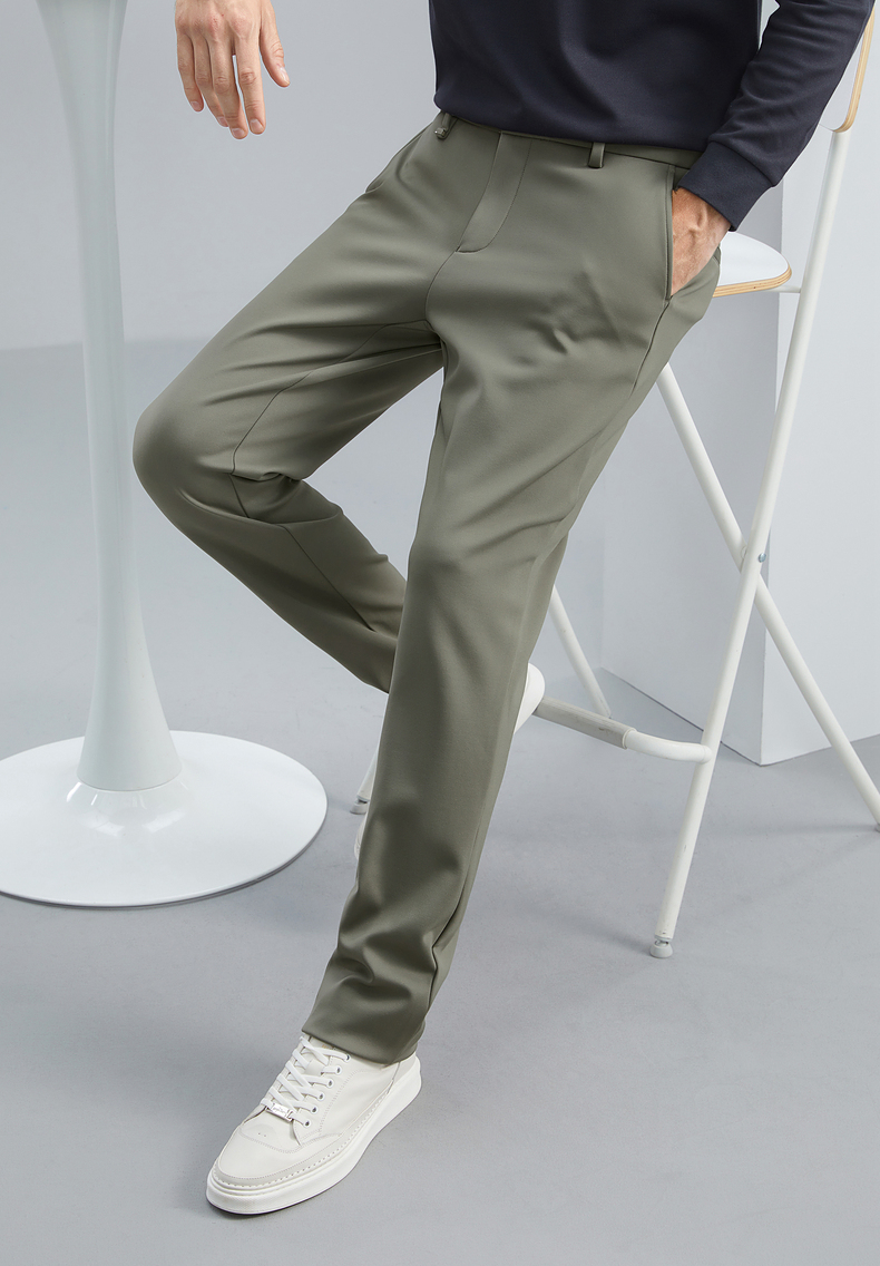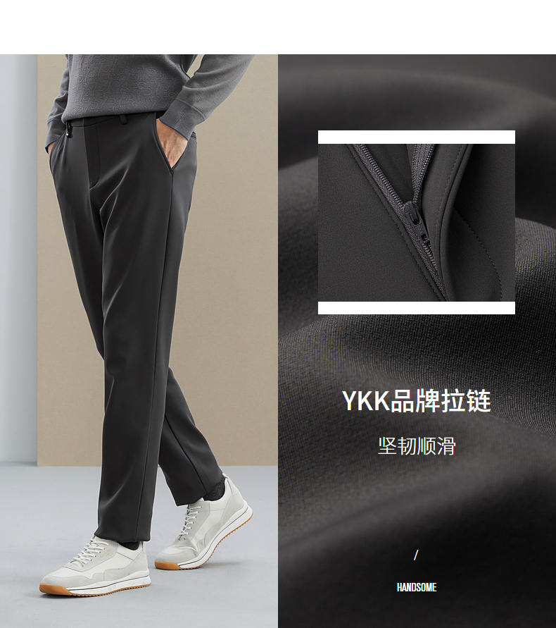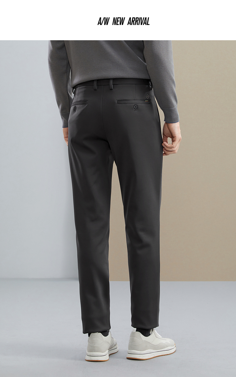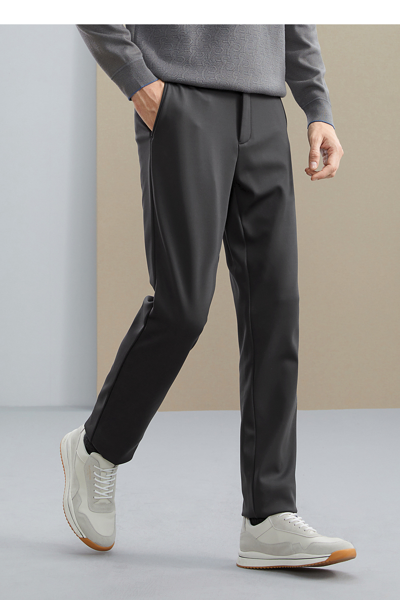 【复合绒】柒牌直筒休闲裤男秋冬新款中腰弹力针织商务长裤子 125H71340