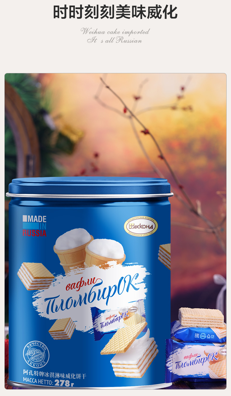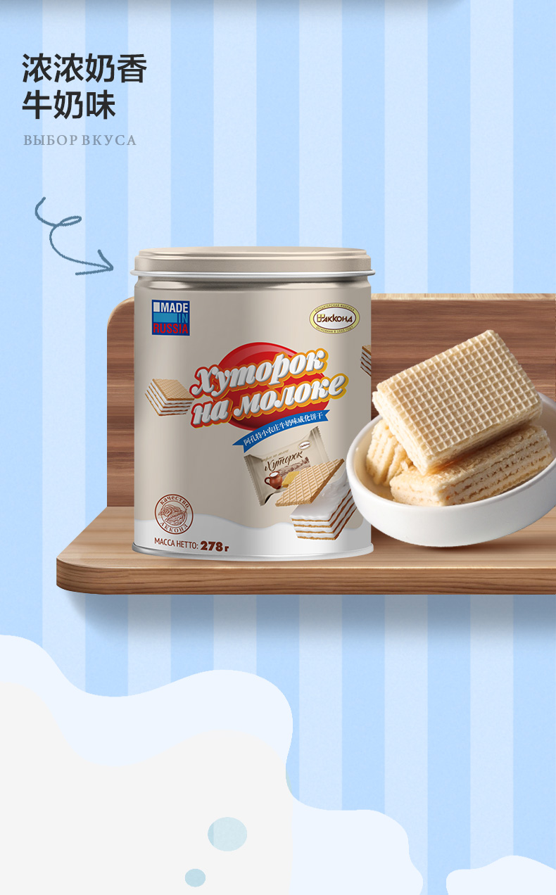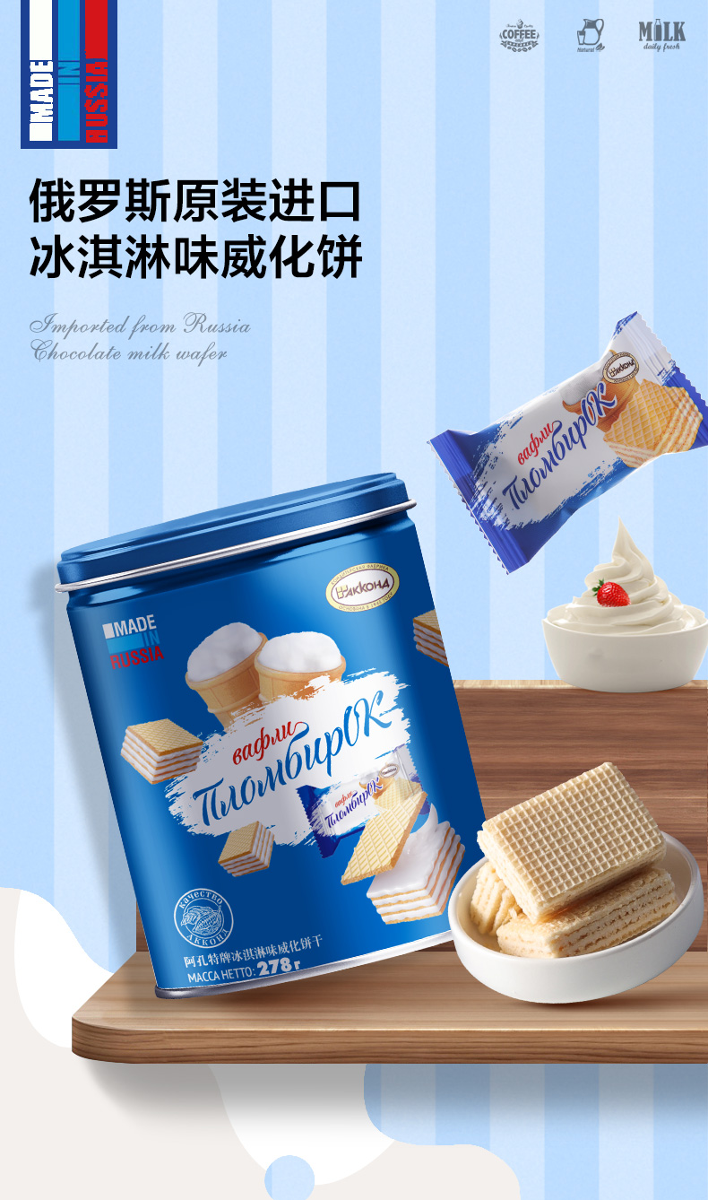 俄罗斯阿孔特牌冰淇淋味/小农庄牛奶味威化饼干278g 醇香甜蜜酥松香脆 152469/152618