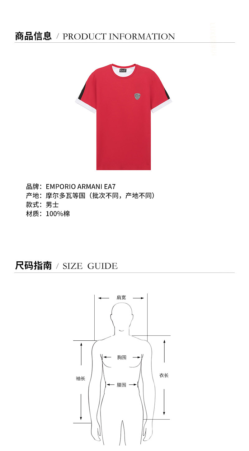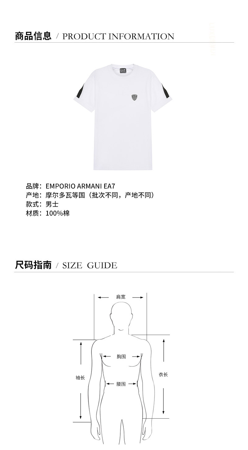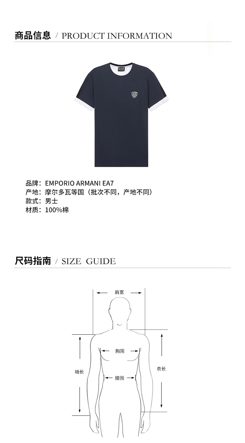 EA7/EA7 男士短袖T恤 男士棉质圆领短袖T恤 3KPT56 PJ4MZ