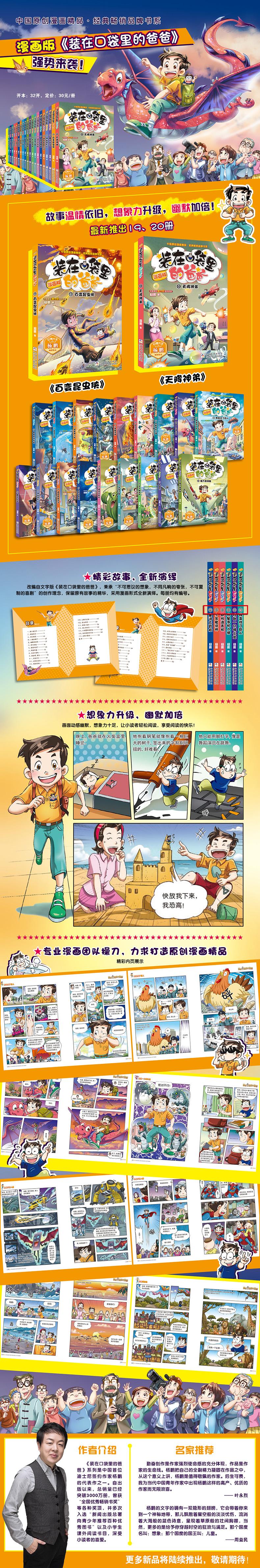 《装在口袋里的爸爸》系列是中国首位迪士尼签约作家杨鹏的代表作之一,销量已突破百万册,已成为当代儿童文学领域中深受读者欢迎的经典图书之一。它融童话、科幻和儿童幽默为一体,有着独特的文体风格。丛书通过夸张的手法,描绘了小主人公杨歌和他只有拇指大的小人儿爸爸发生的一系列幽默故事。夸张和幽默的表现形式后面,蕴含着浓浓的父子情,让小读者在享受阅读的同时,感受到父爱的温馨。漫画版秉承“不可思议的想象,不同凡响的夸张,将想象力进行到底!”的创作理念,专为小学低年级小朋友创作。