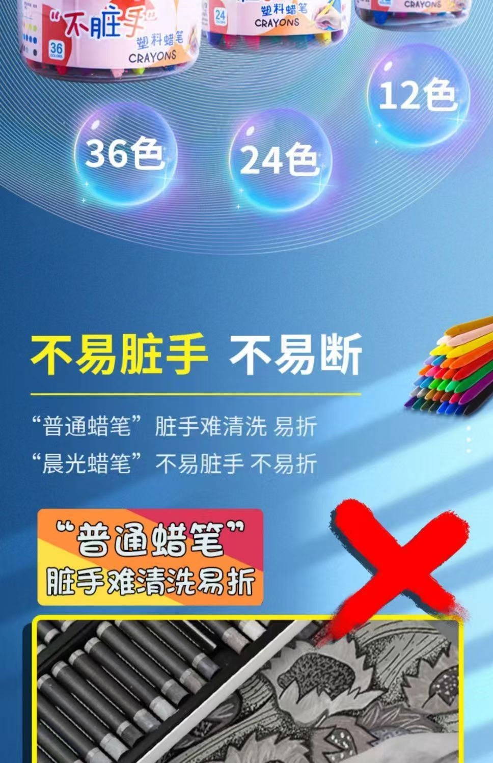 晨光塑料不脏手蜡笔幼儿园安全无毒
