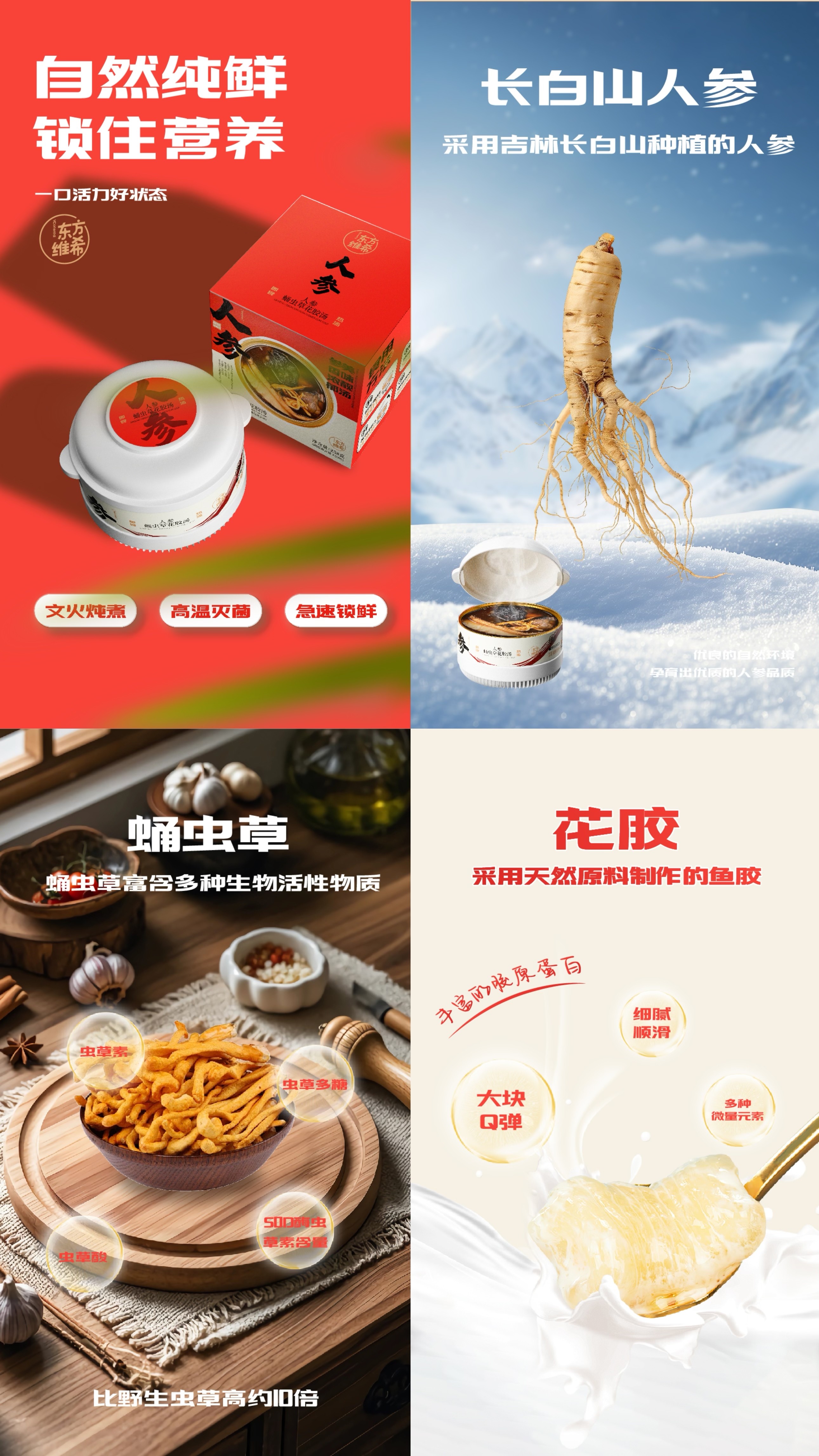 四味汤宝套组 (陈皮雪梨土鸡汤/天麻葛根龙骨汤/人参蛹虫草花胶汤/肉苁蓉党参鸽子汤)