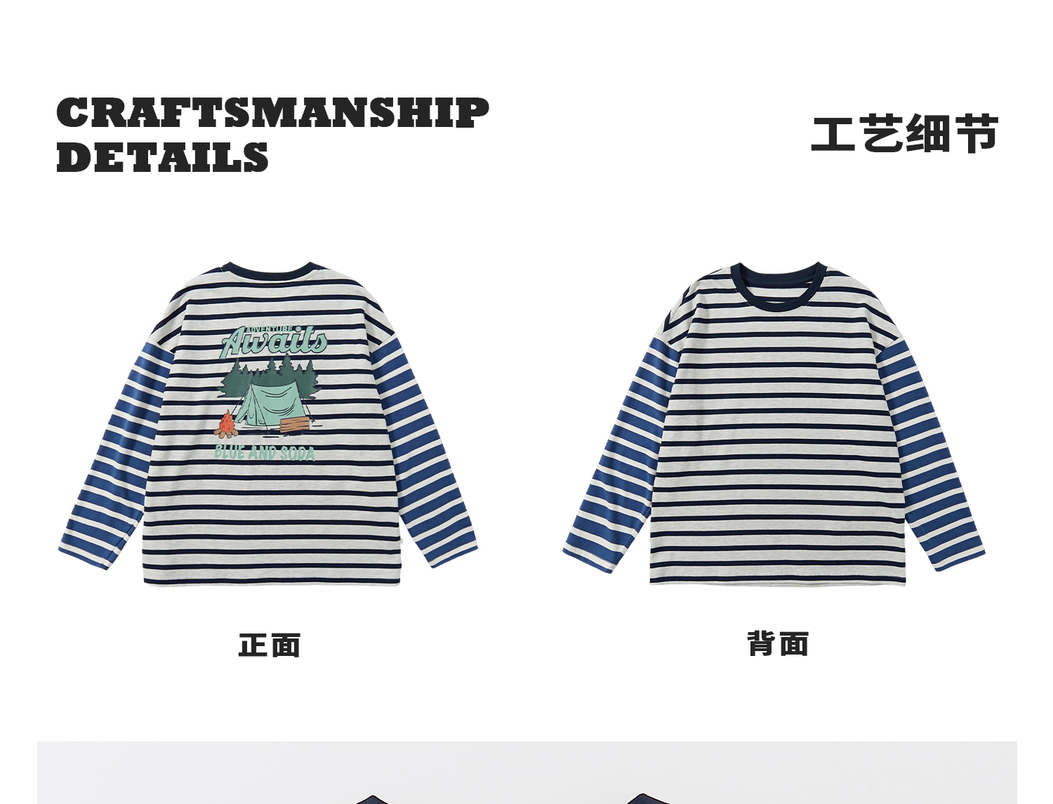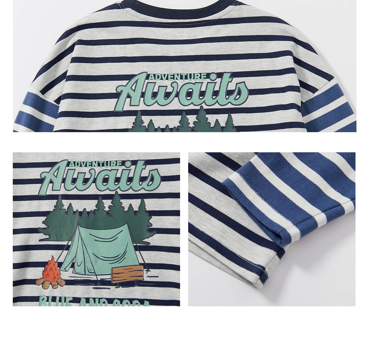 【代发】 蓝汽水秋季亲子装中大男童印花条纹长袖T恤经典休闲上衣花灰藏青条纹