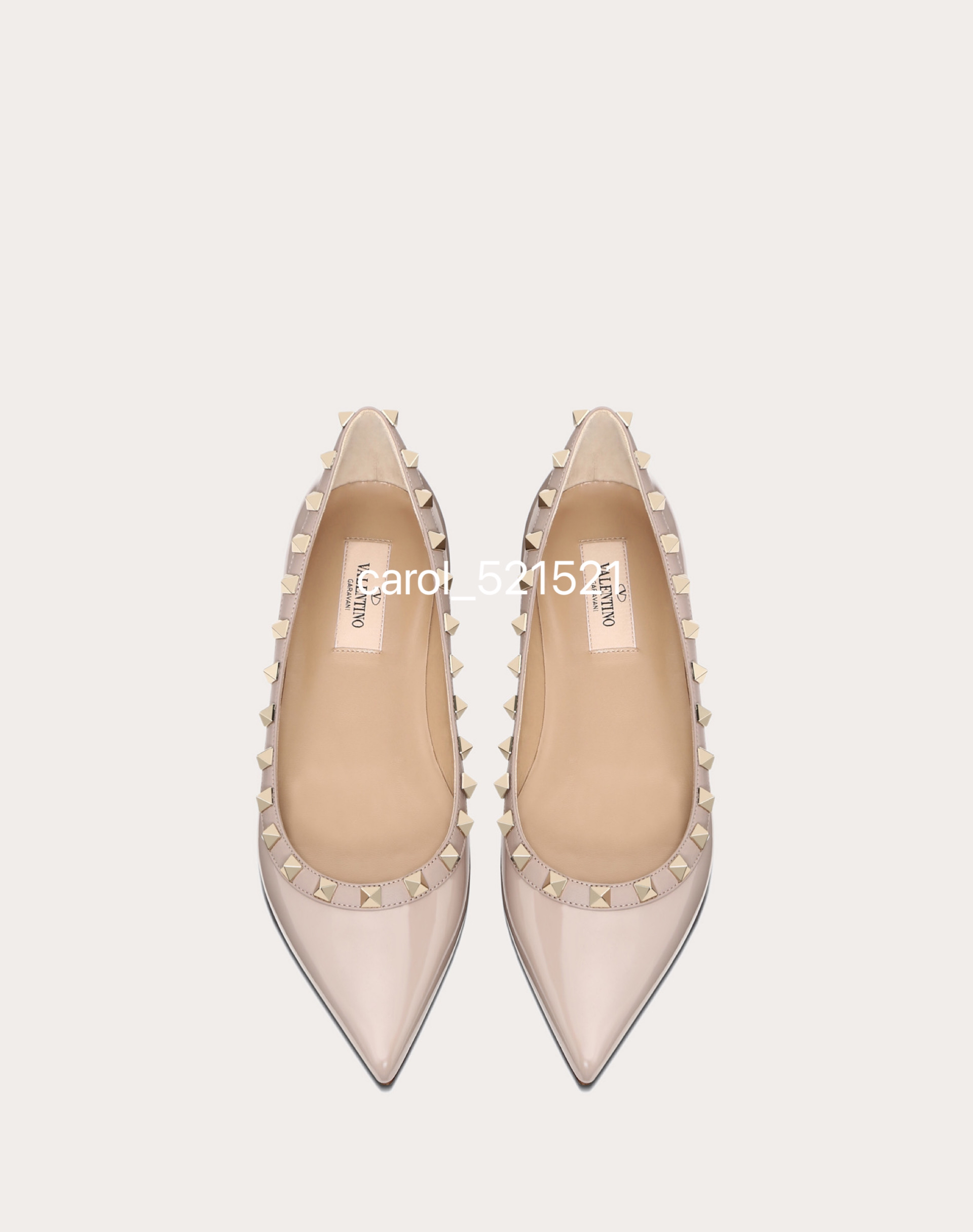 VLTN ROCKSTUD 漆皮铆钉芭蕾平底鞋原版楦型纯手工车线打钉