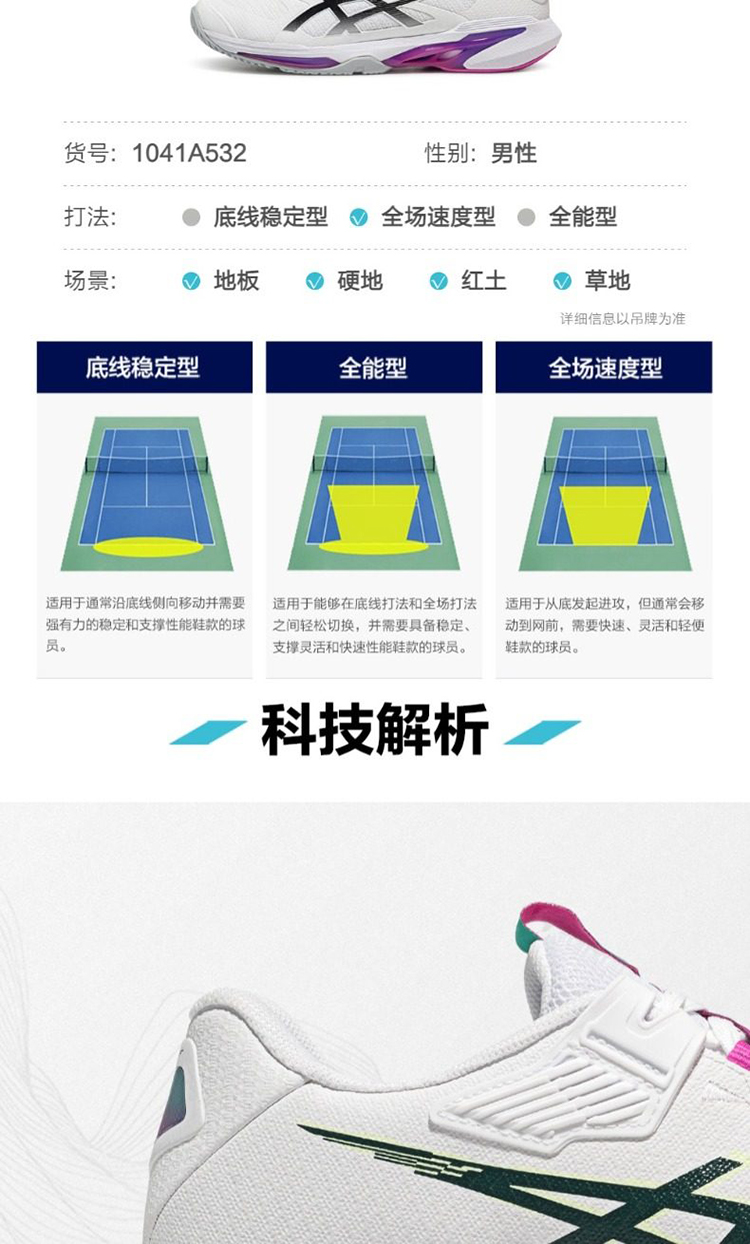ASICS亚瑟士 SOLUTION SPEED FF 4男女款适透气比赛训练运动网球鞋