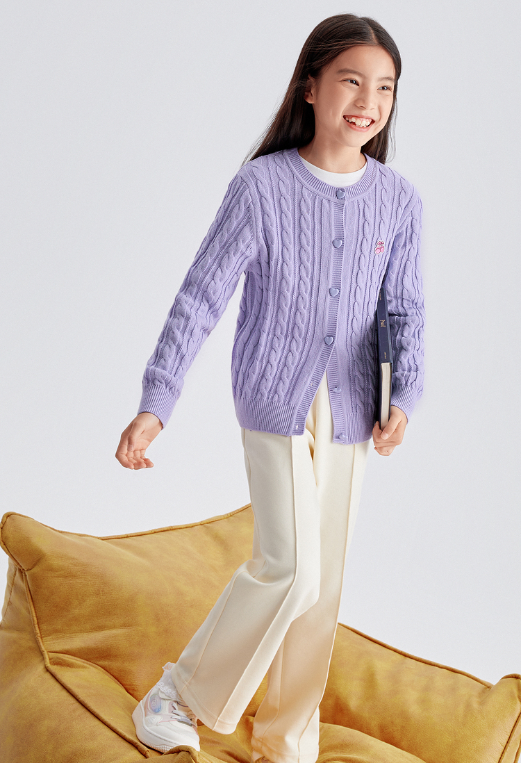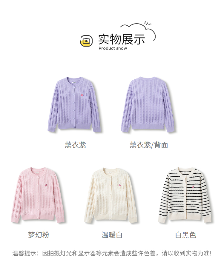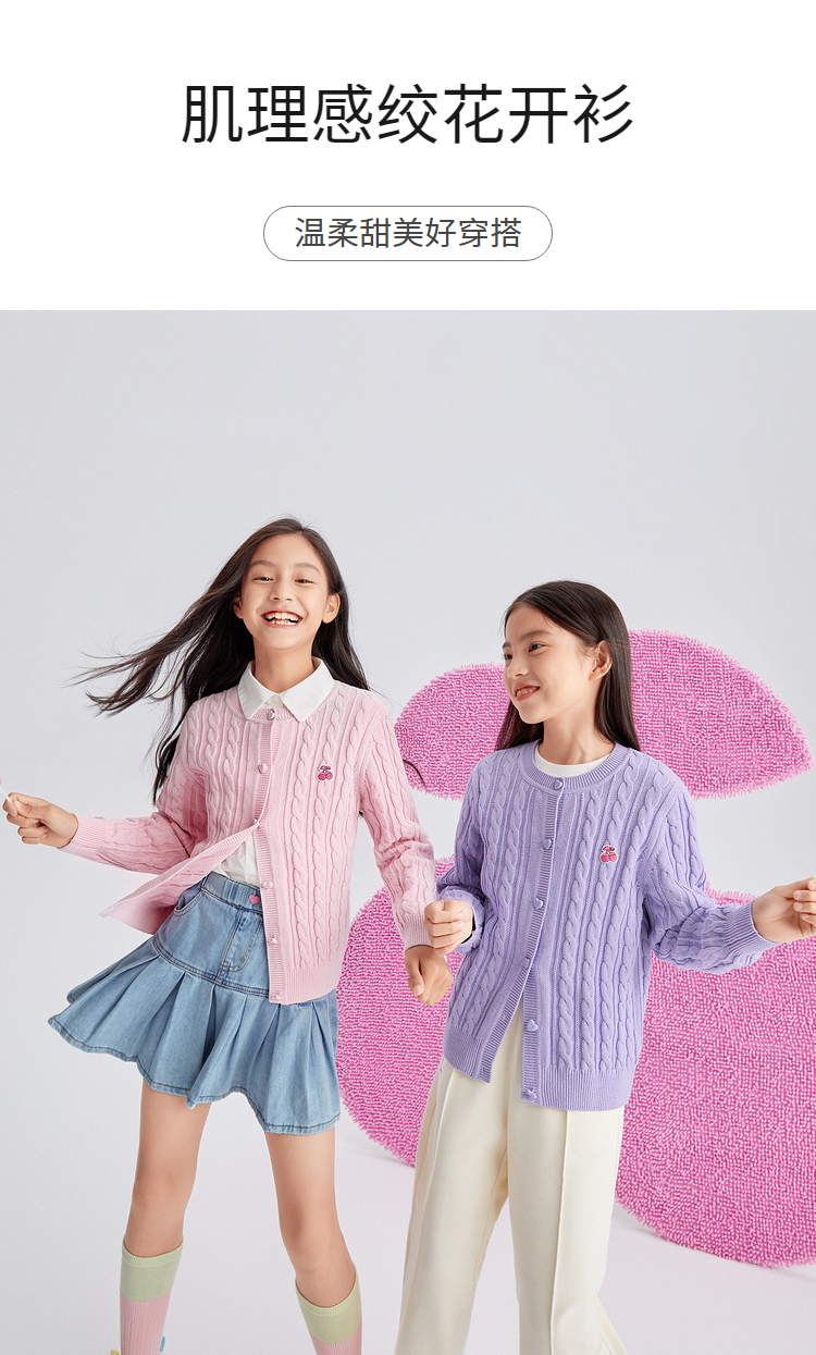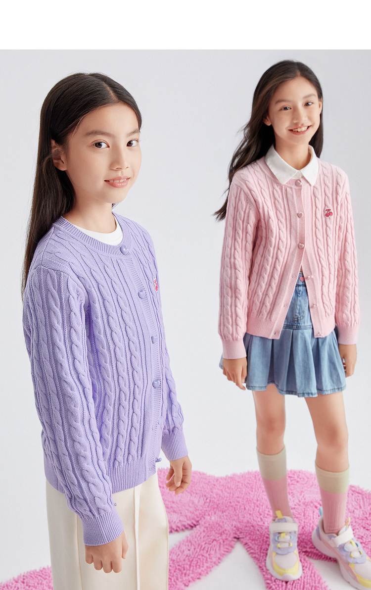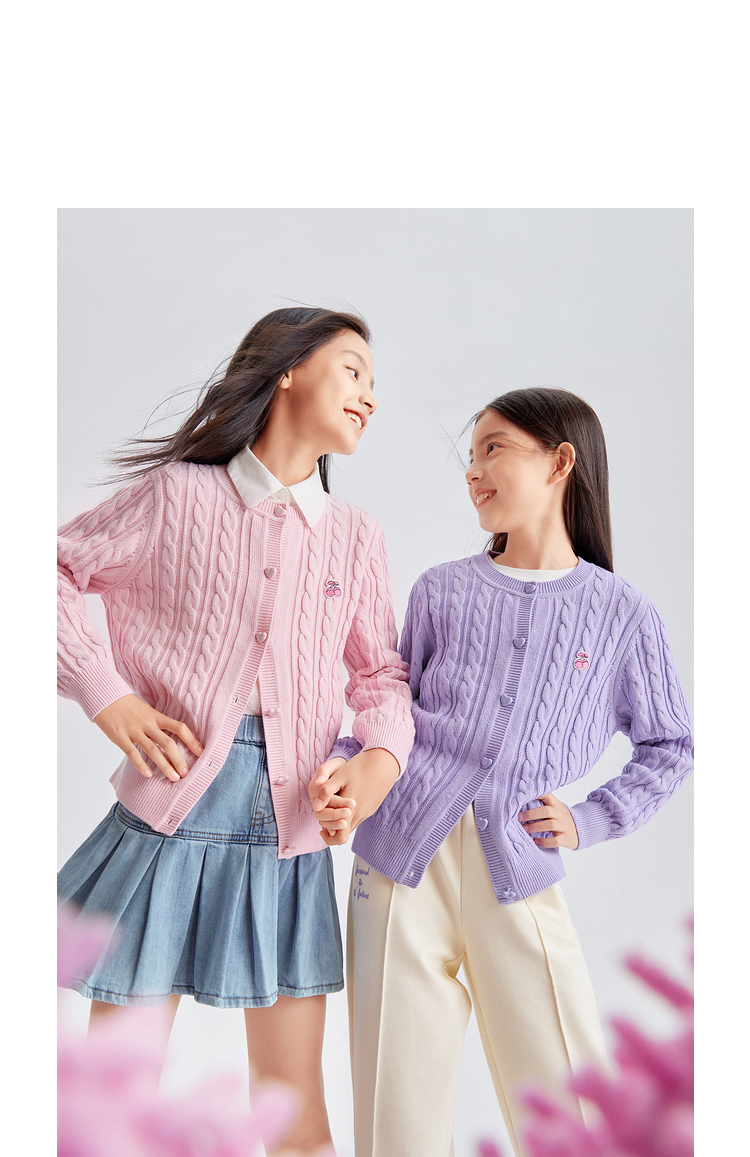 巴拉巴拉女童毛衣秋装新款童装洋气开衫中大童儿童绞花针织衫