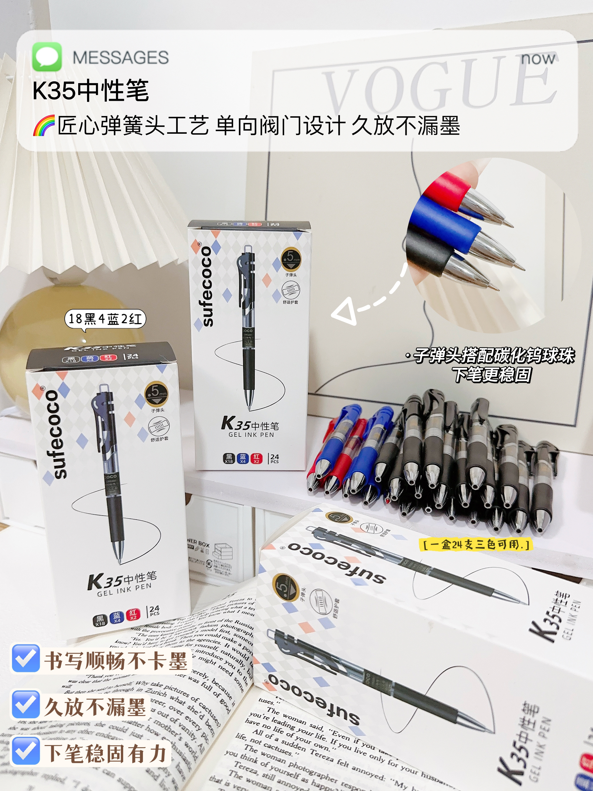 【醒粉福利13.9元24支】中国笔中卷王k35中性笔!! 笔头碳化钨球珠 下笔稳固有力 匠心弹簧头工艺 单向阀门设计 久放不漏墨