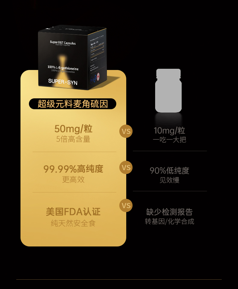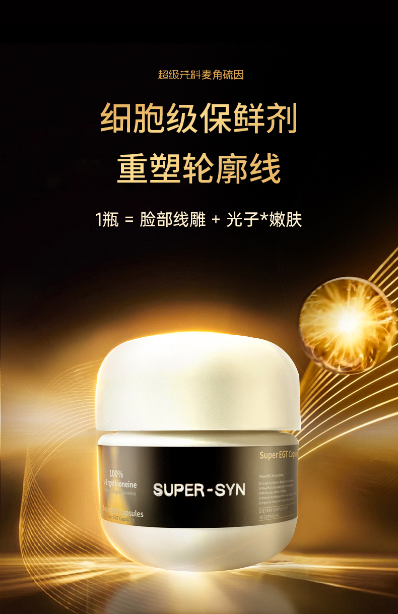 【保税】SUPER-SYN超级元料麦角硫因胶囊 30粒/瓶 美国FDA认证 6瓶装更划算 优质菌种生物合成萃取