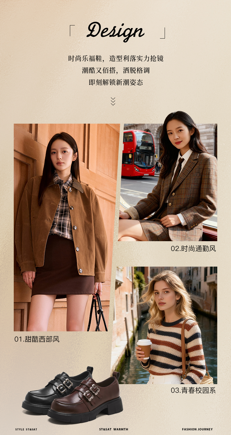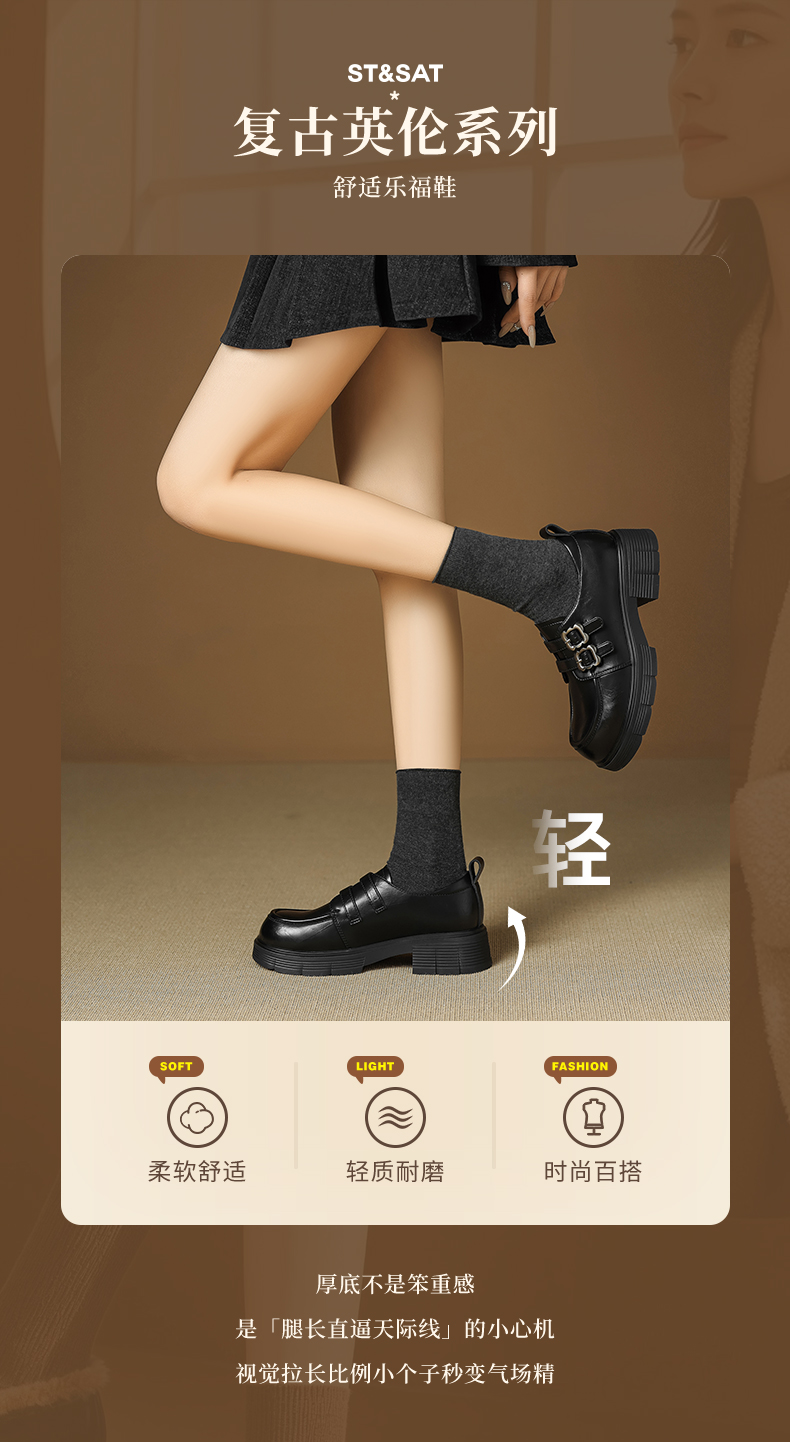 星期六26春新款学院风厚底花花乐福鞋SSE1112C3Y