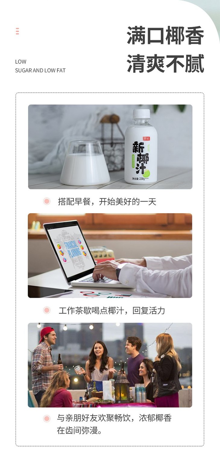 节日必备~【菲诺新椰汁】238g*12瓶/箱,不添加香精、色素、防腐剂