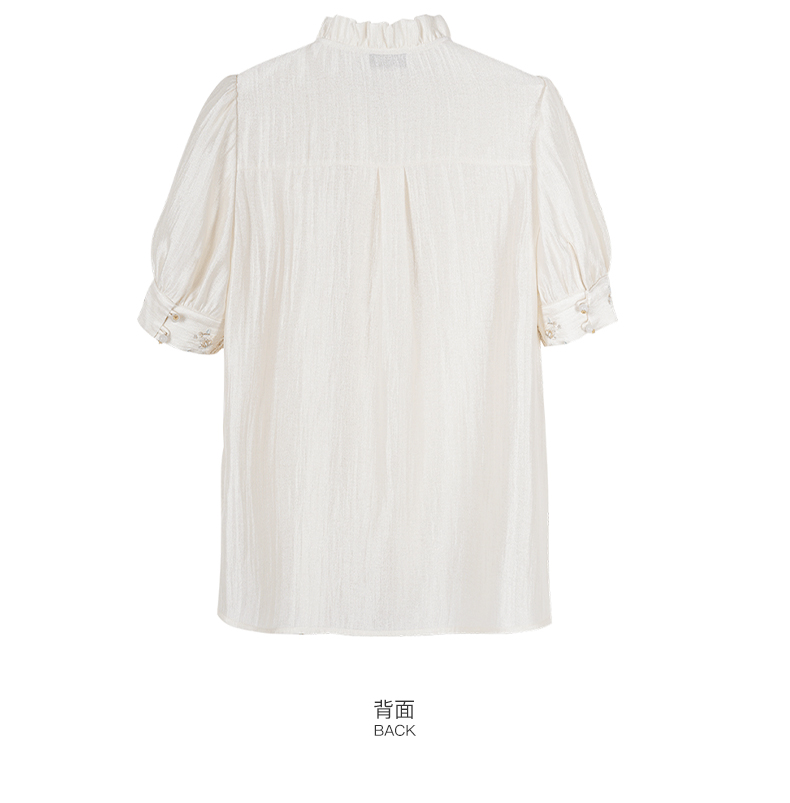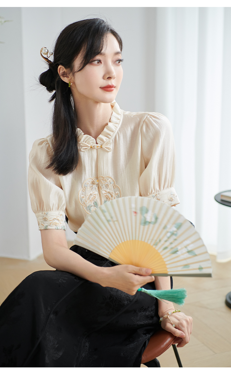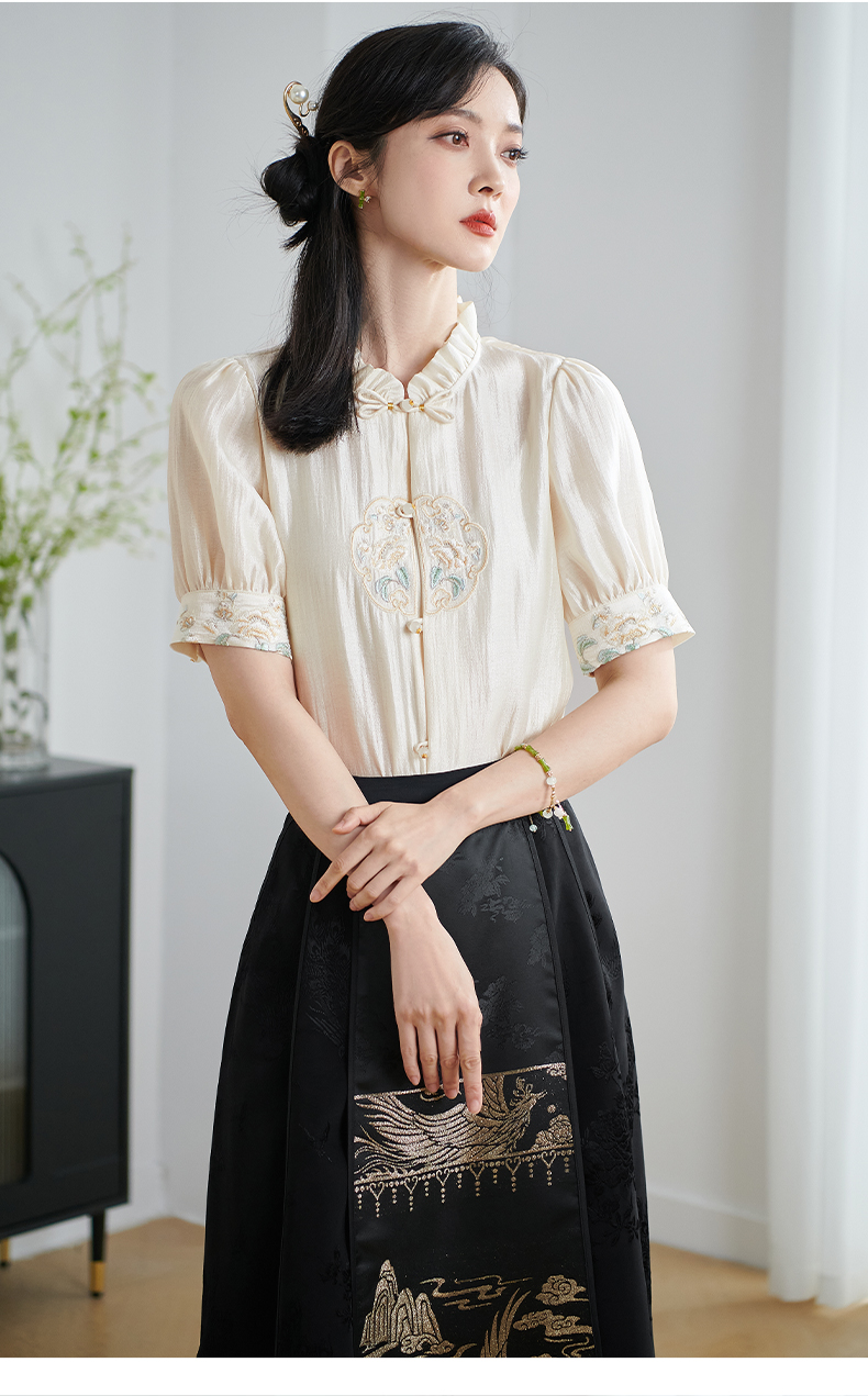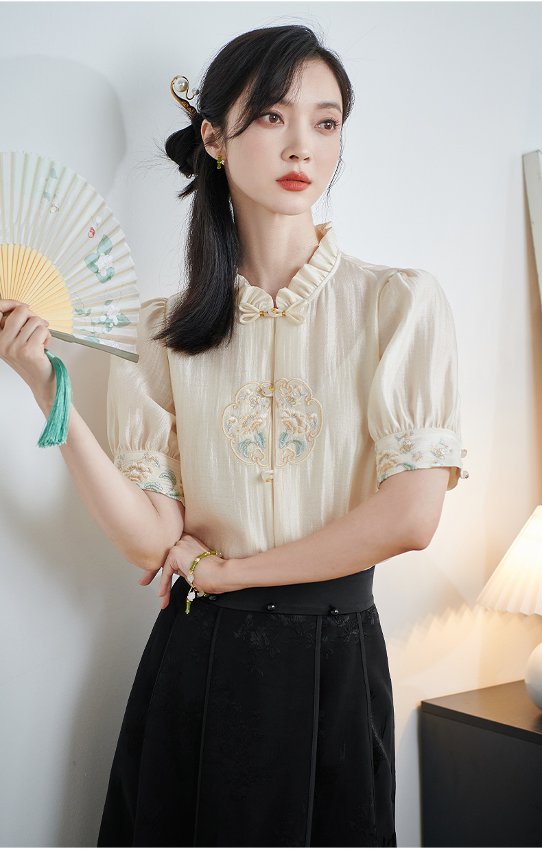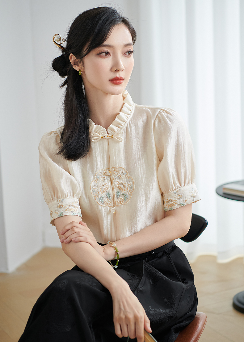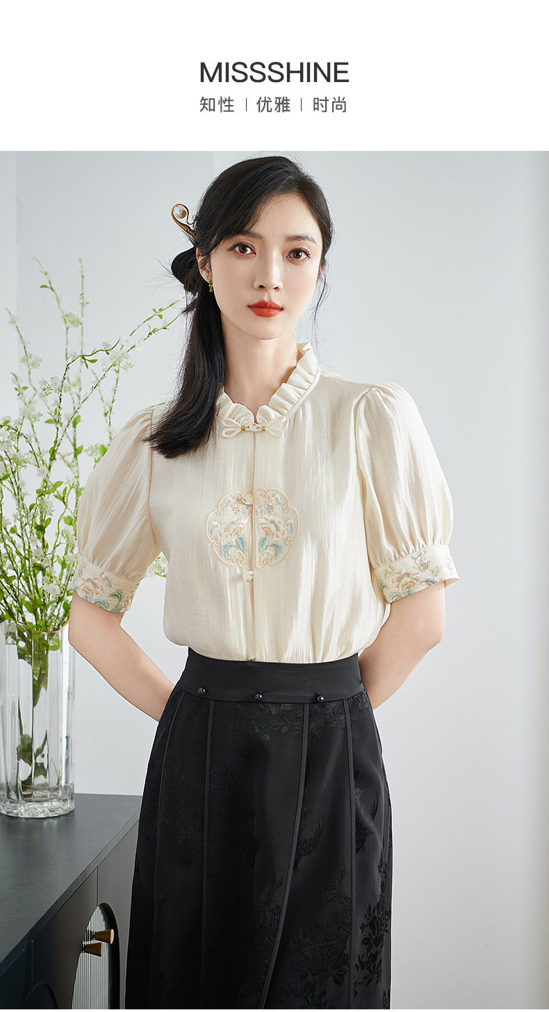 米思阳2025夏季新款新中式国风短袖衬衫盘扣别致设计绣花上衣1667
