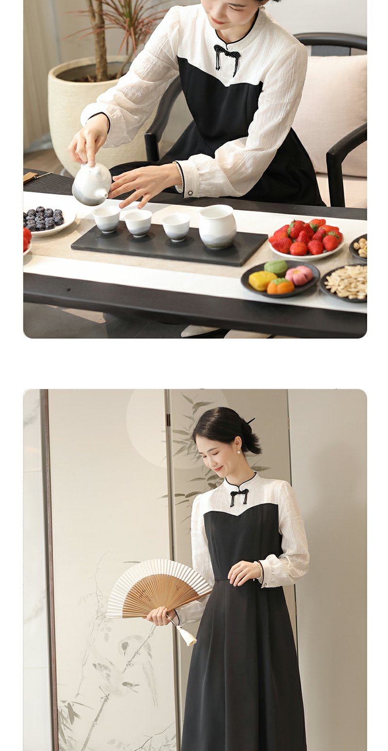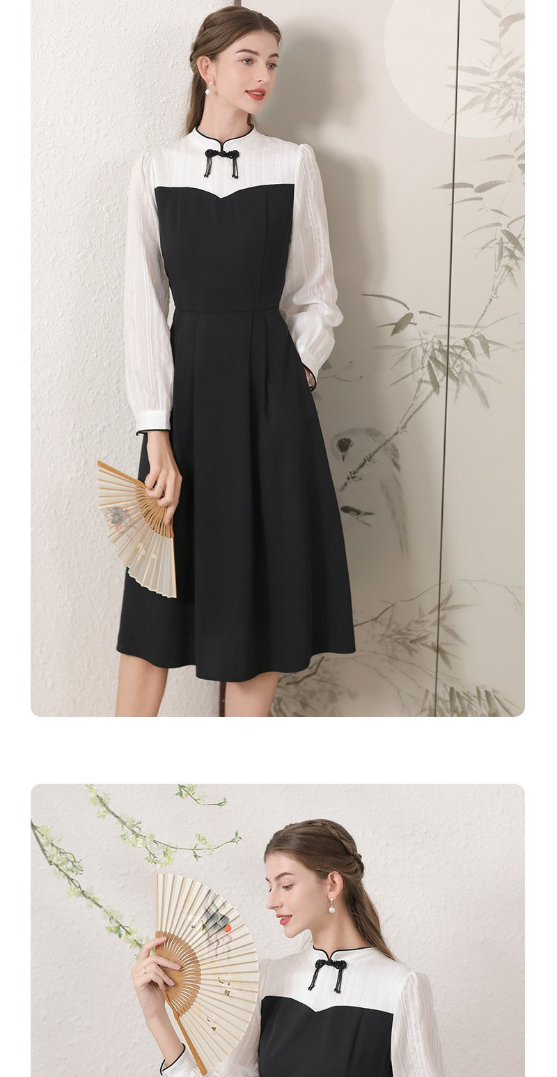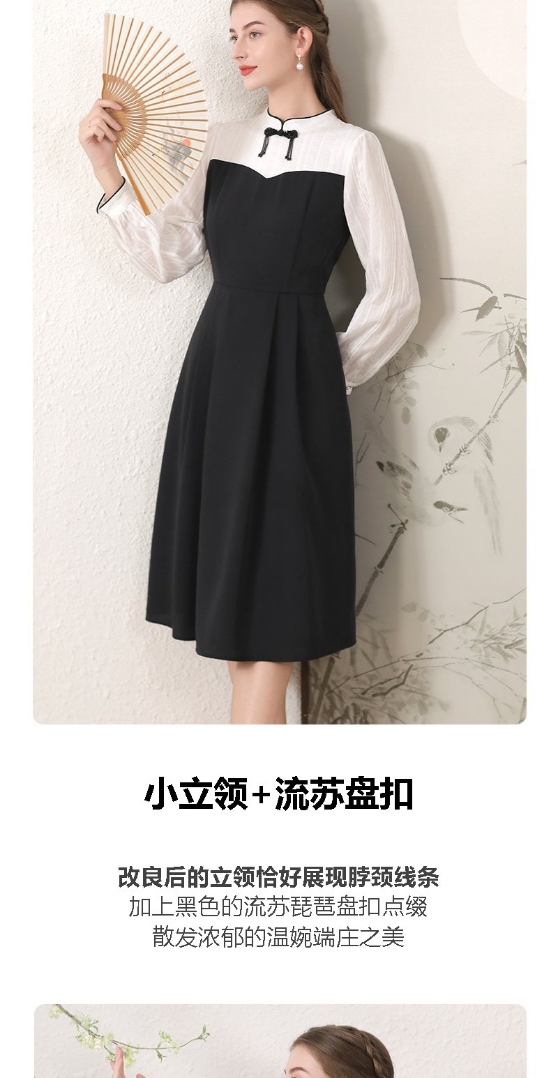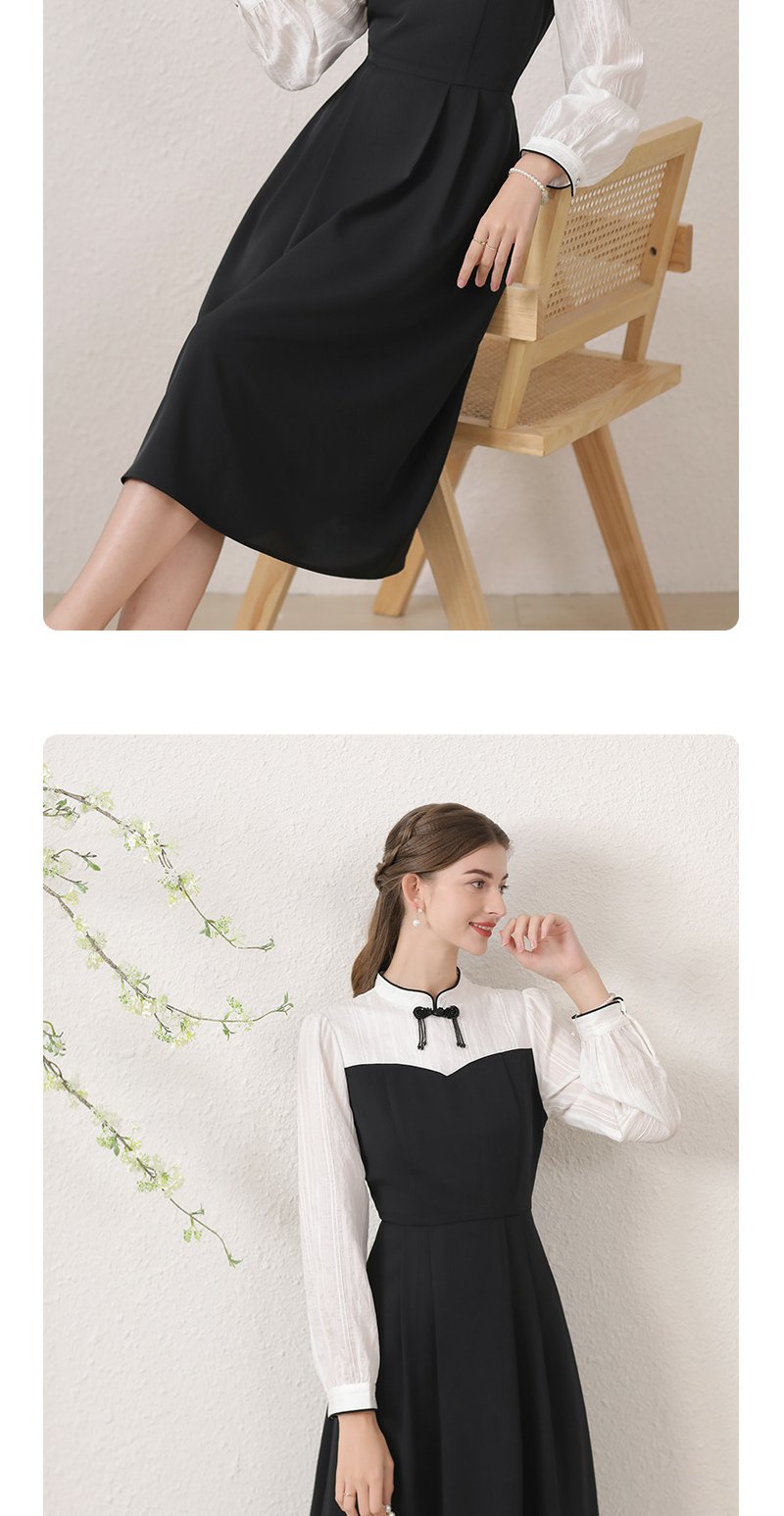 勿忘花黑色新中式改良旗袍连衣裙女装2024秋季新款气质假两件裙子