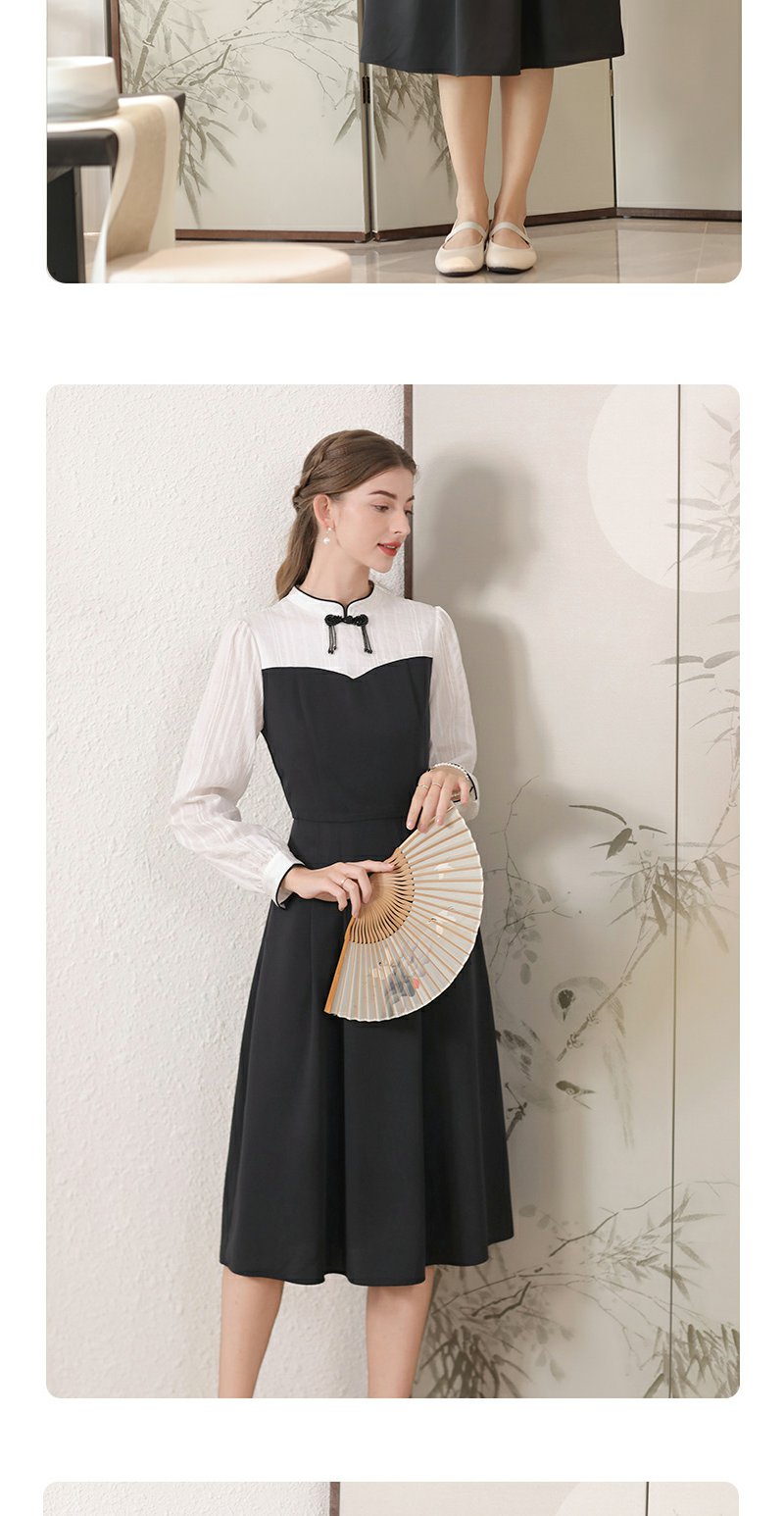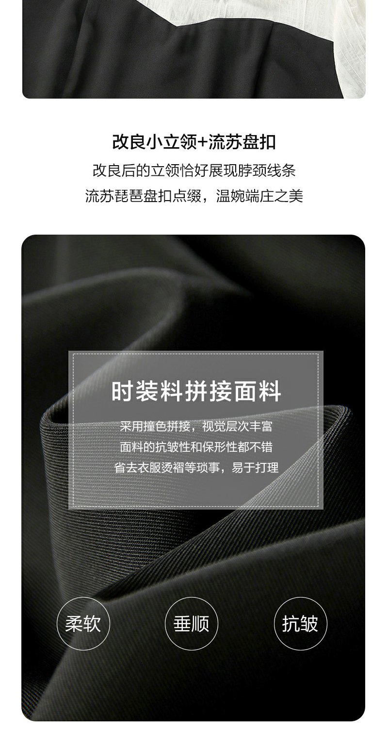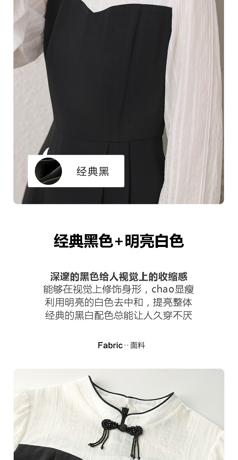 勿忘花黑色新中式改良旗袍连衣裙女装2024秋季新款气质假两件裙子