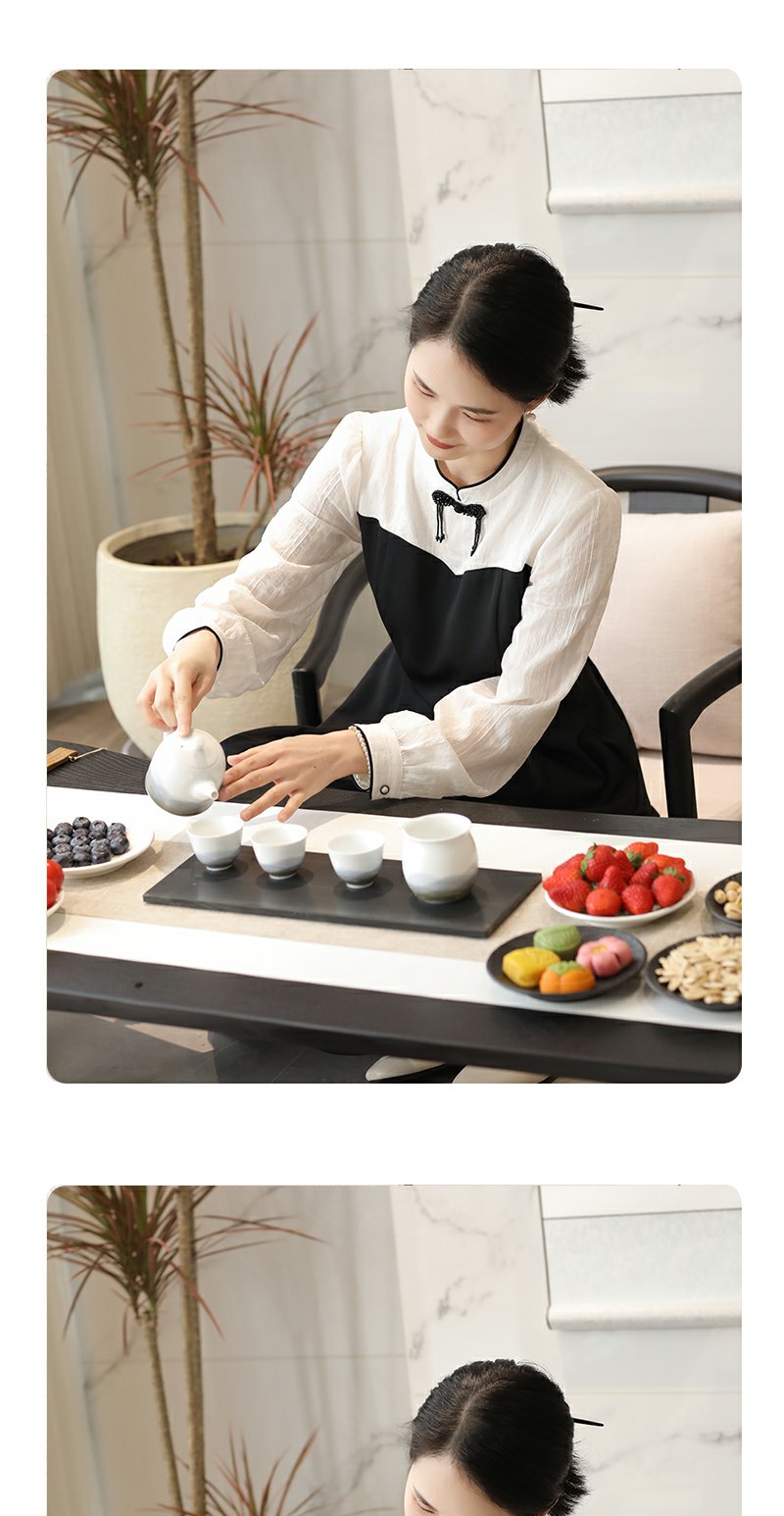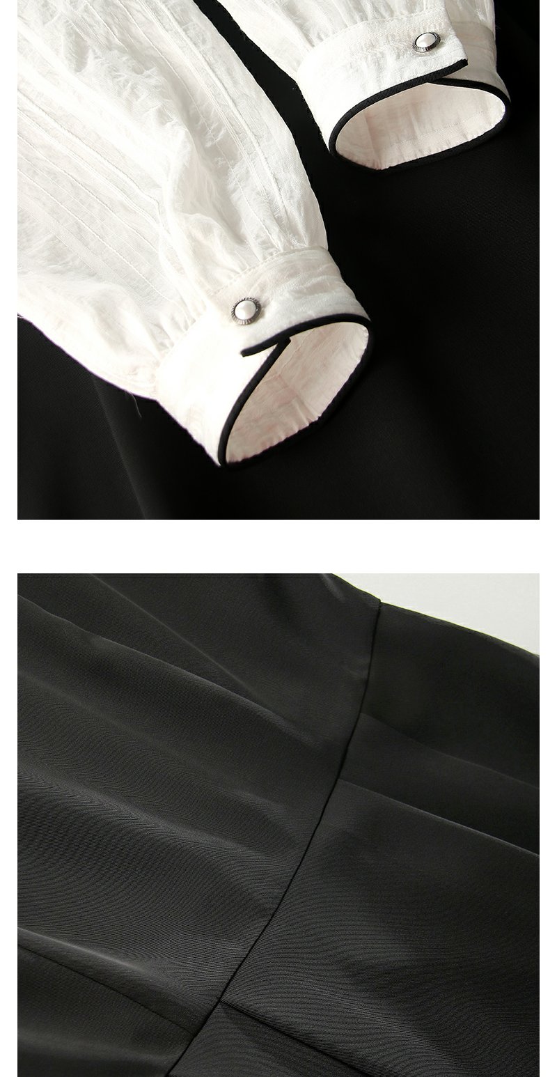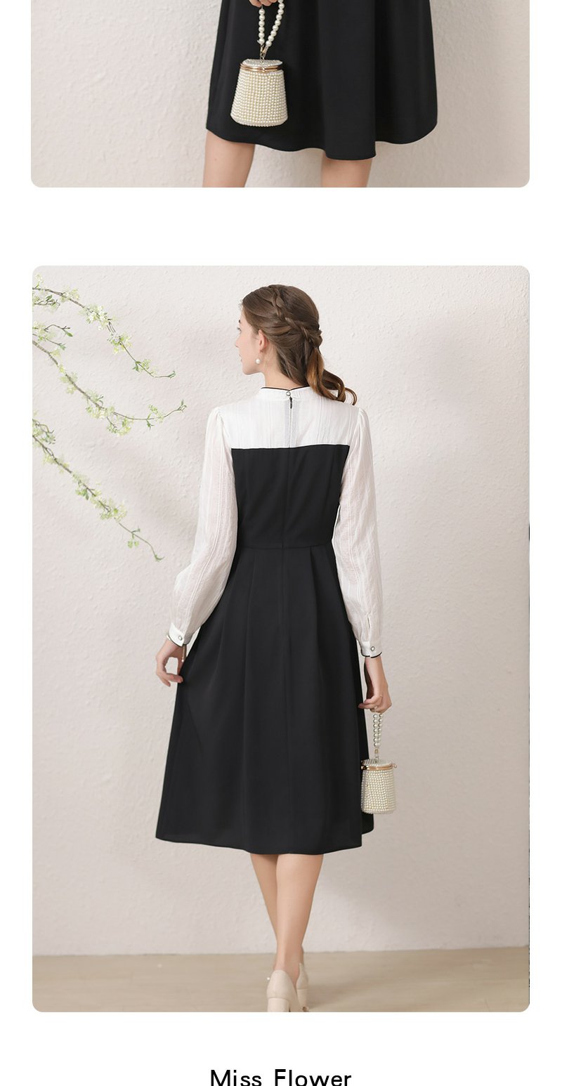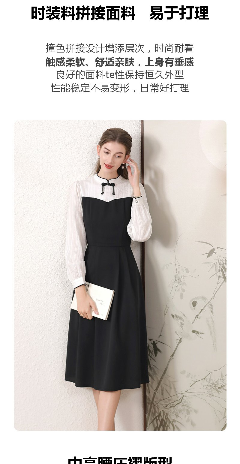 勿忘花黑色新中式改良旗袍连衣裙女装2024秋季新款气质假两件裙子