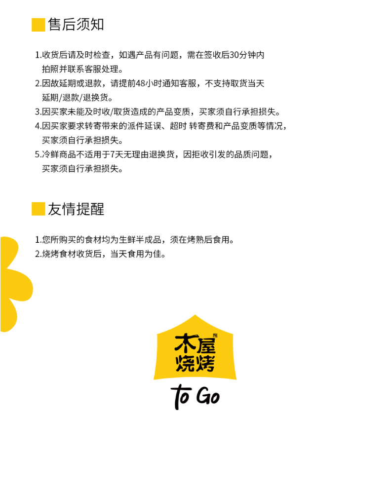 木屋烧烤半成品套装,一键下单,使命必达。 -全国300家门店支持次日到店自提 -全国顺丰包邮,当日下单,次日顺丰送货上门(部分区域除外,实际以顺丰时效为准)
