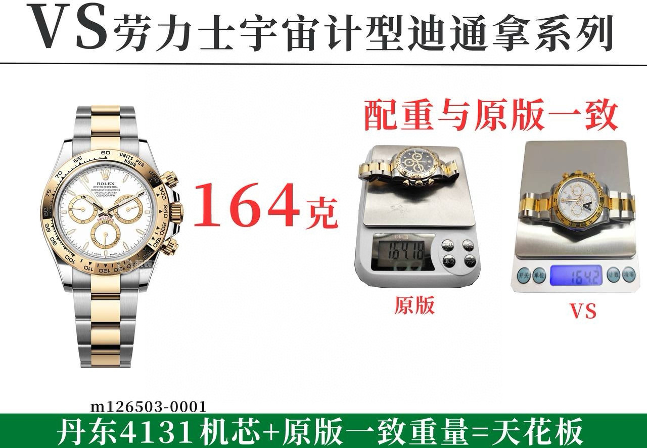 劳力士宇宙计型 VS迪通拿4131配重版 VS迪通拿间金钢带款 配重版 男士腕表 丹东4131机