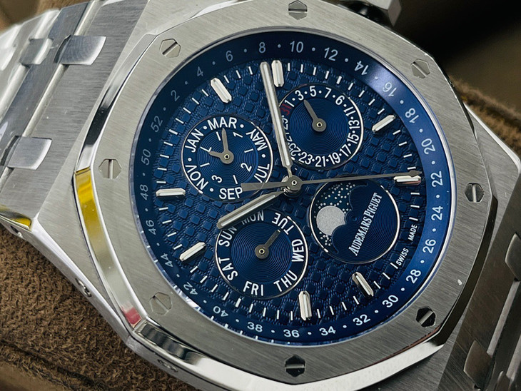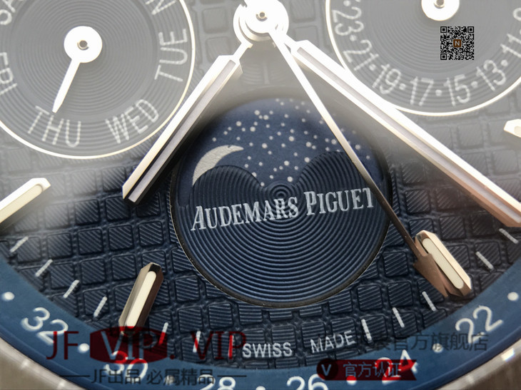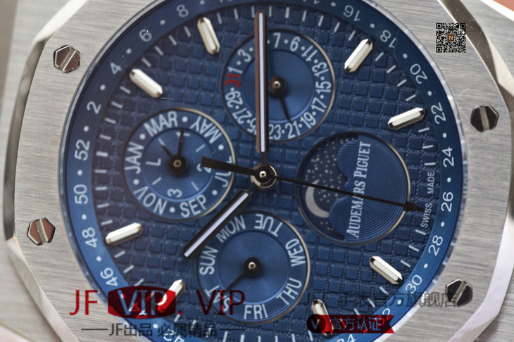 JF爱彼皇家橡树26574。功能:日期显示、星期显示、月份显示、年历显示、万年历、月相进口机克隆原装5134自动机械机芯,41毫米,男士手表腕表