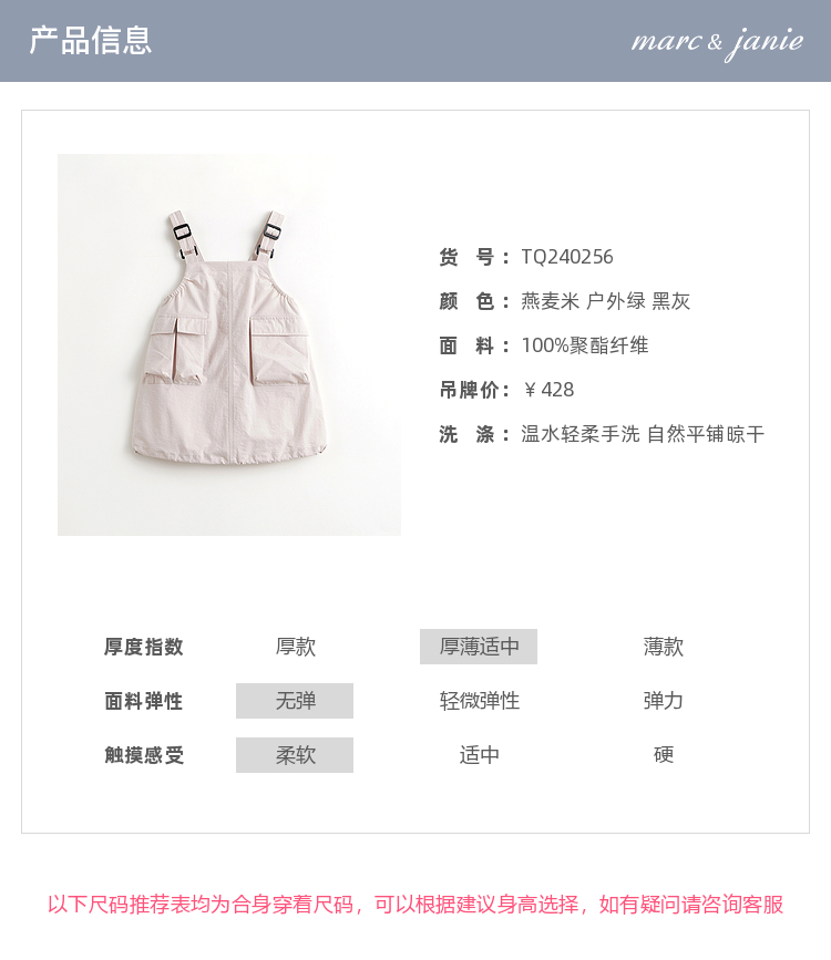 【吸湿速干】马克珍妮女童山系户外工装背带连衣裙春装新款240256