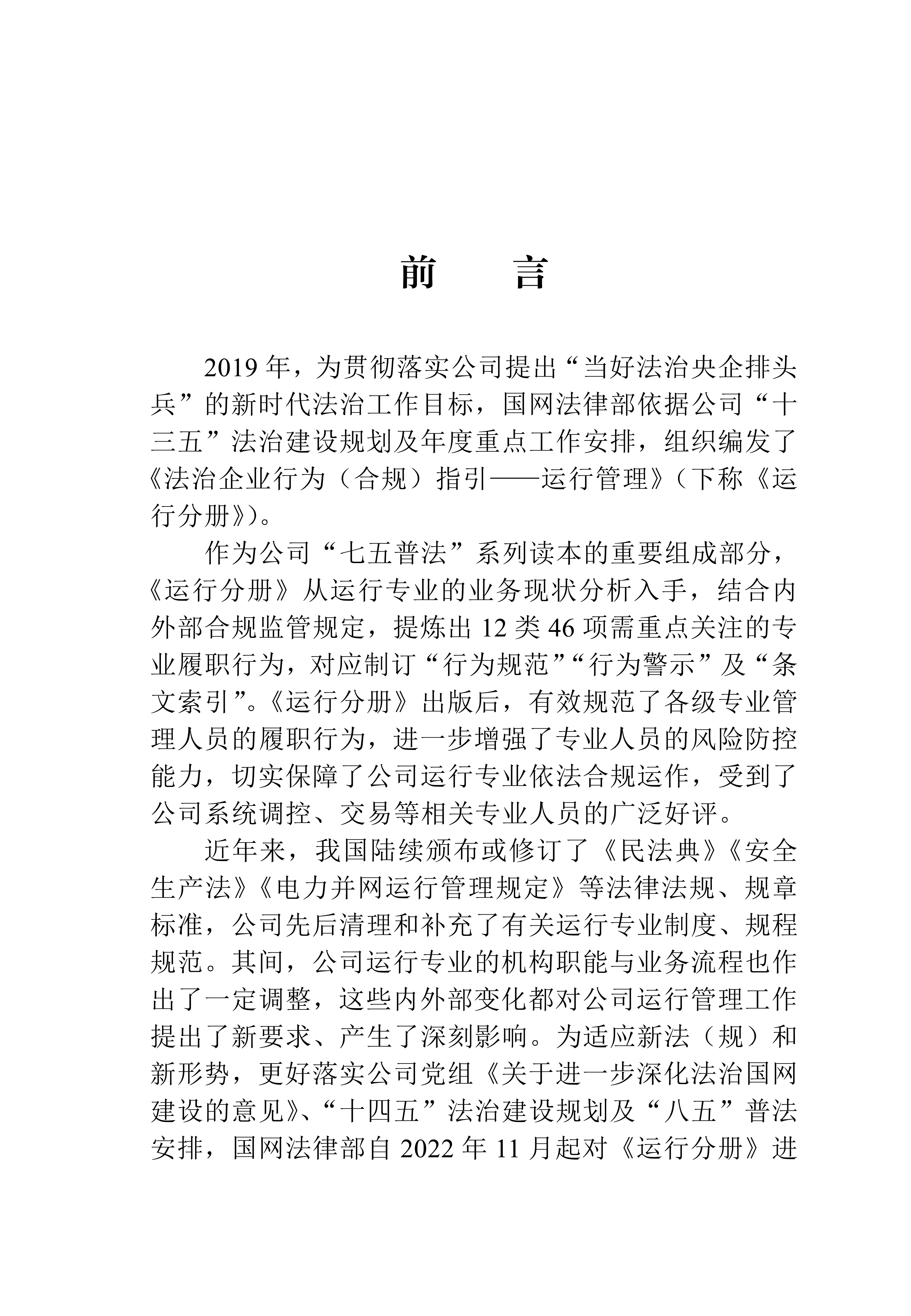 国家电网有限公司“八五”普法系列 法治企业(合规管理)行为指引——运行管理