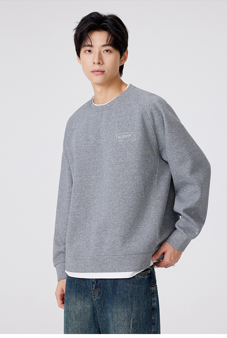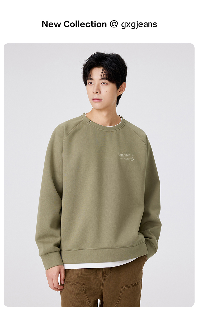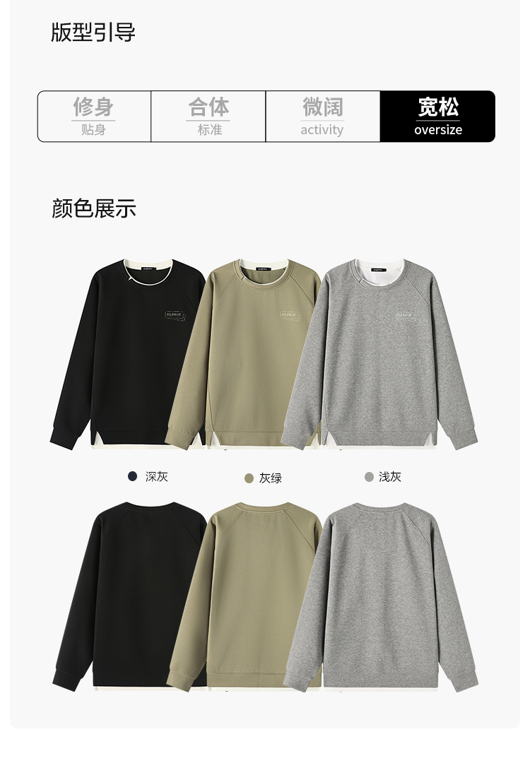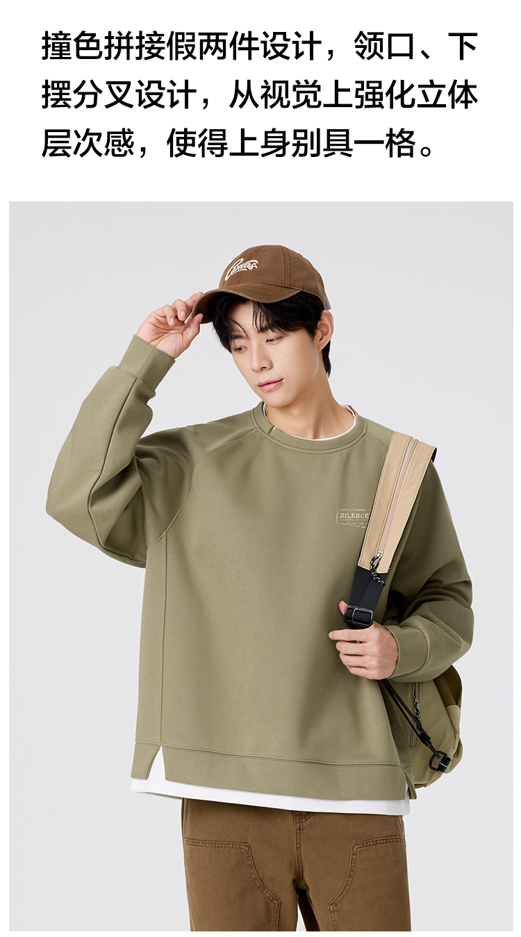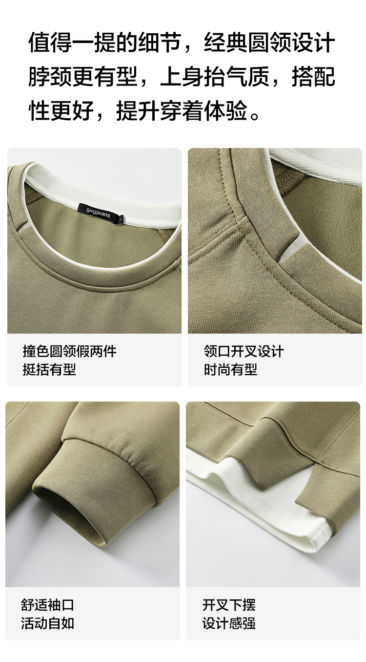 gxgjeans 男装撞色拼接假两件男士圆领卫衣2025秋款宽松日常通勤校园打底衫K&C