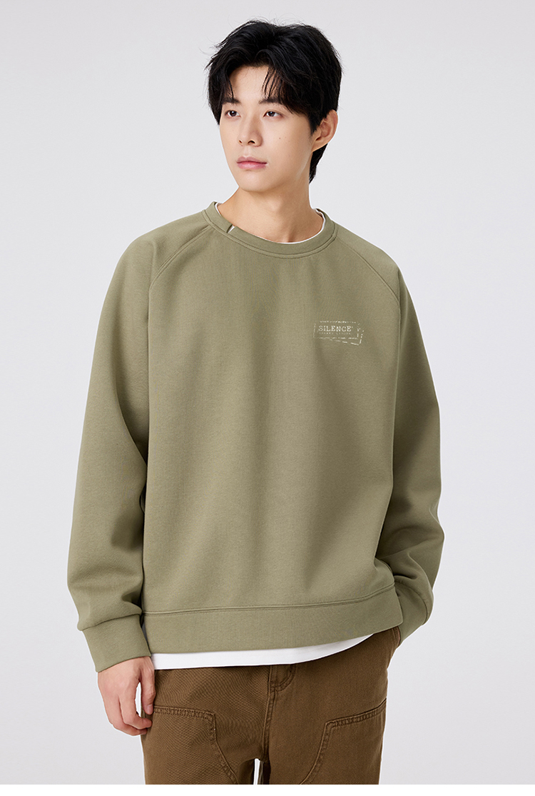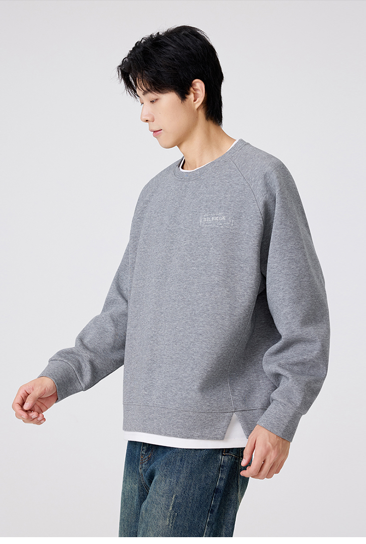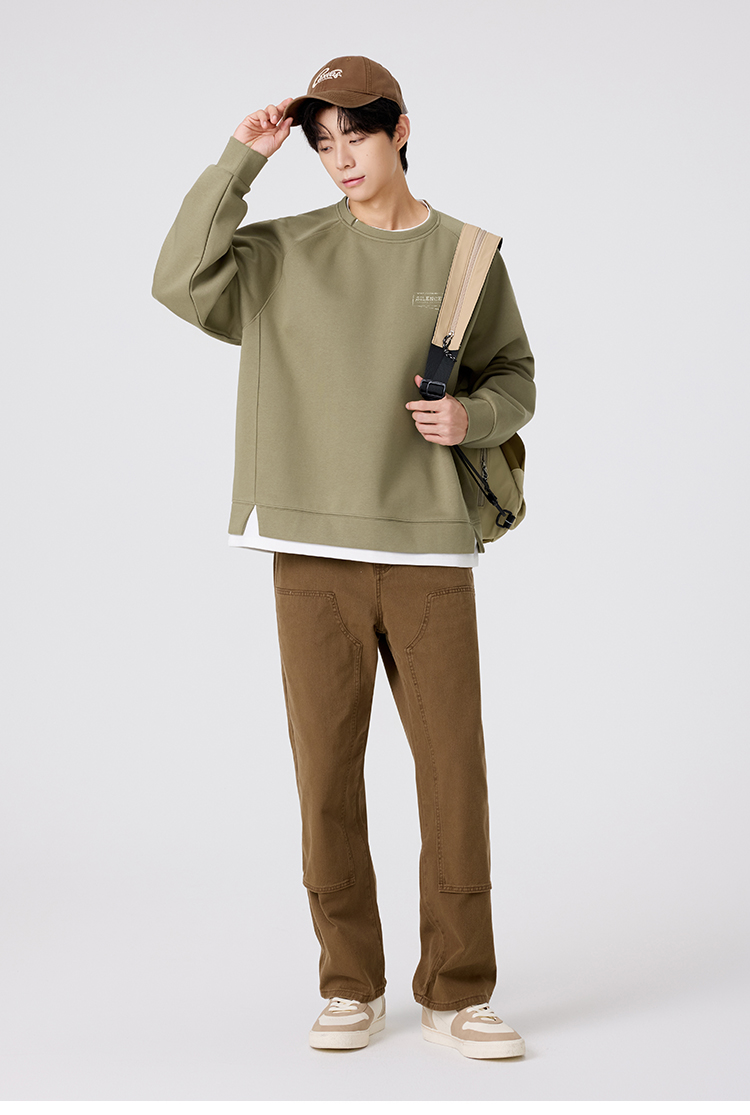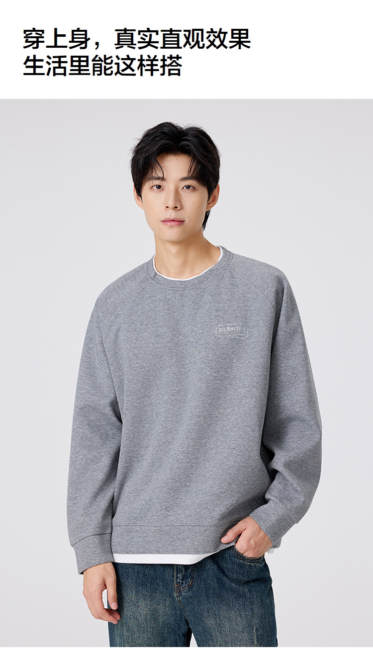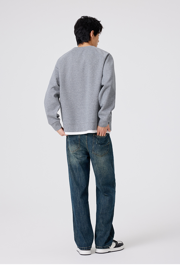 gxgjeans 男装撞色拼接假两件男士圆领卫衣2025秋款宽松日常通勤校园打底衫K&C