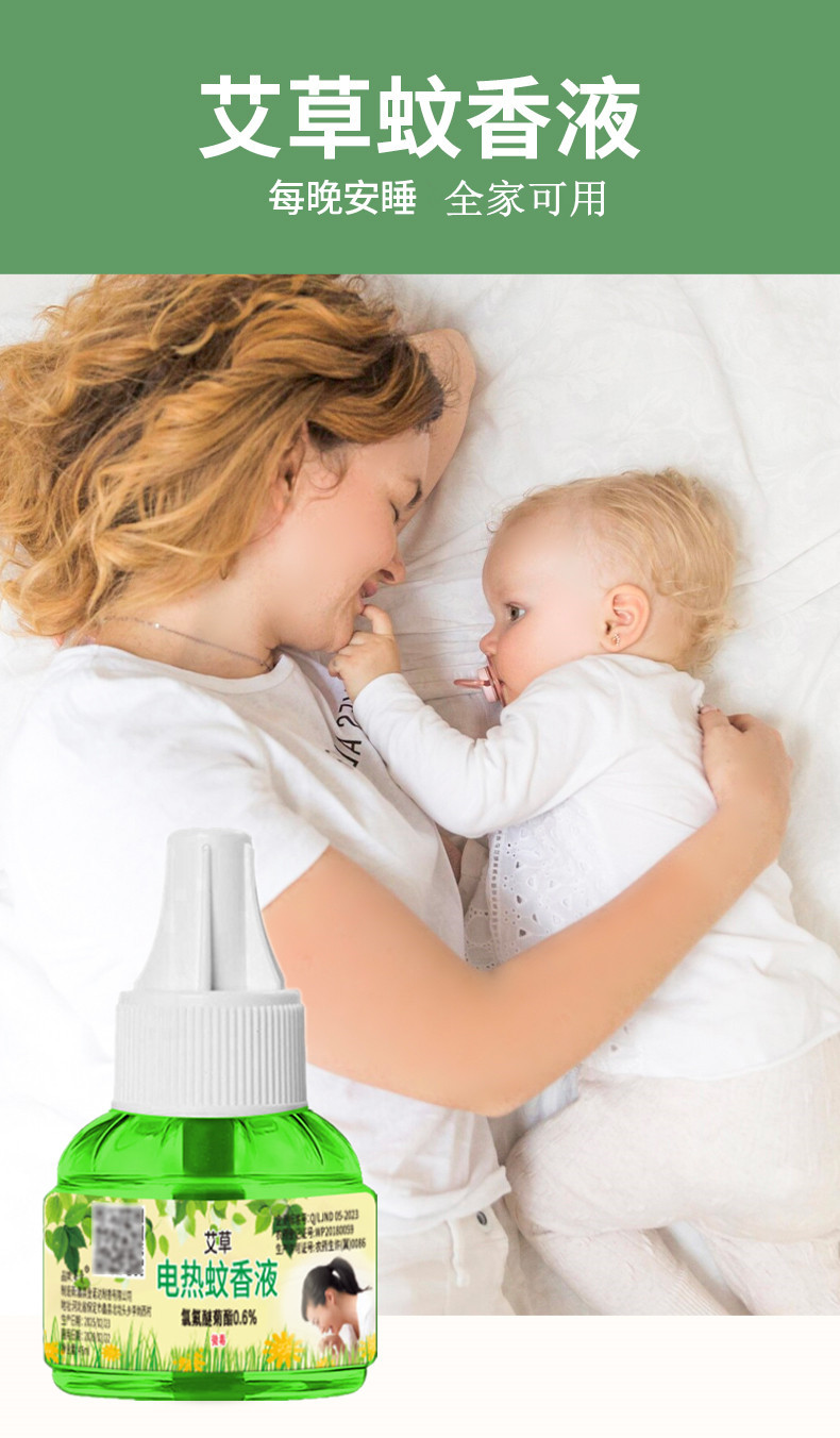 【每晚安睡!全家可用】艾草电热蚊香液无味婴儿孕妇家用无香液体驱蚊液插电式灭蚊香液水。ry