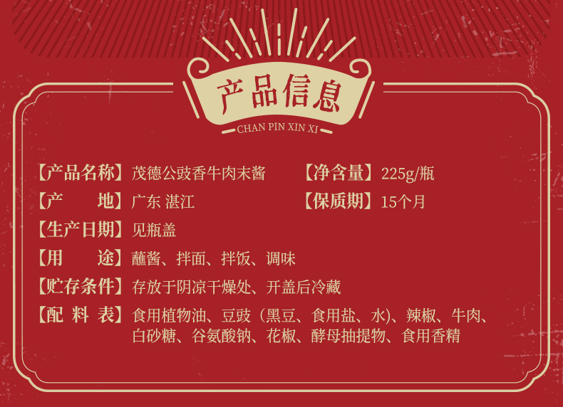 茂德公豉香牛肉末酱农家自制辣椒酱下饭菜拌饭酱拌面酱225g
