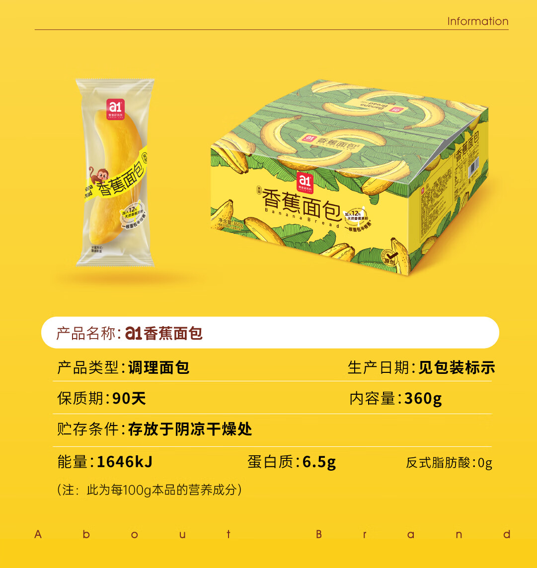 a1香蕉面包360g*2盒 ZH6468 6袋/盒