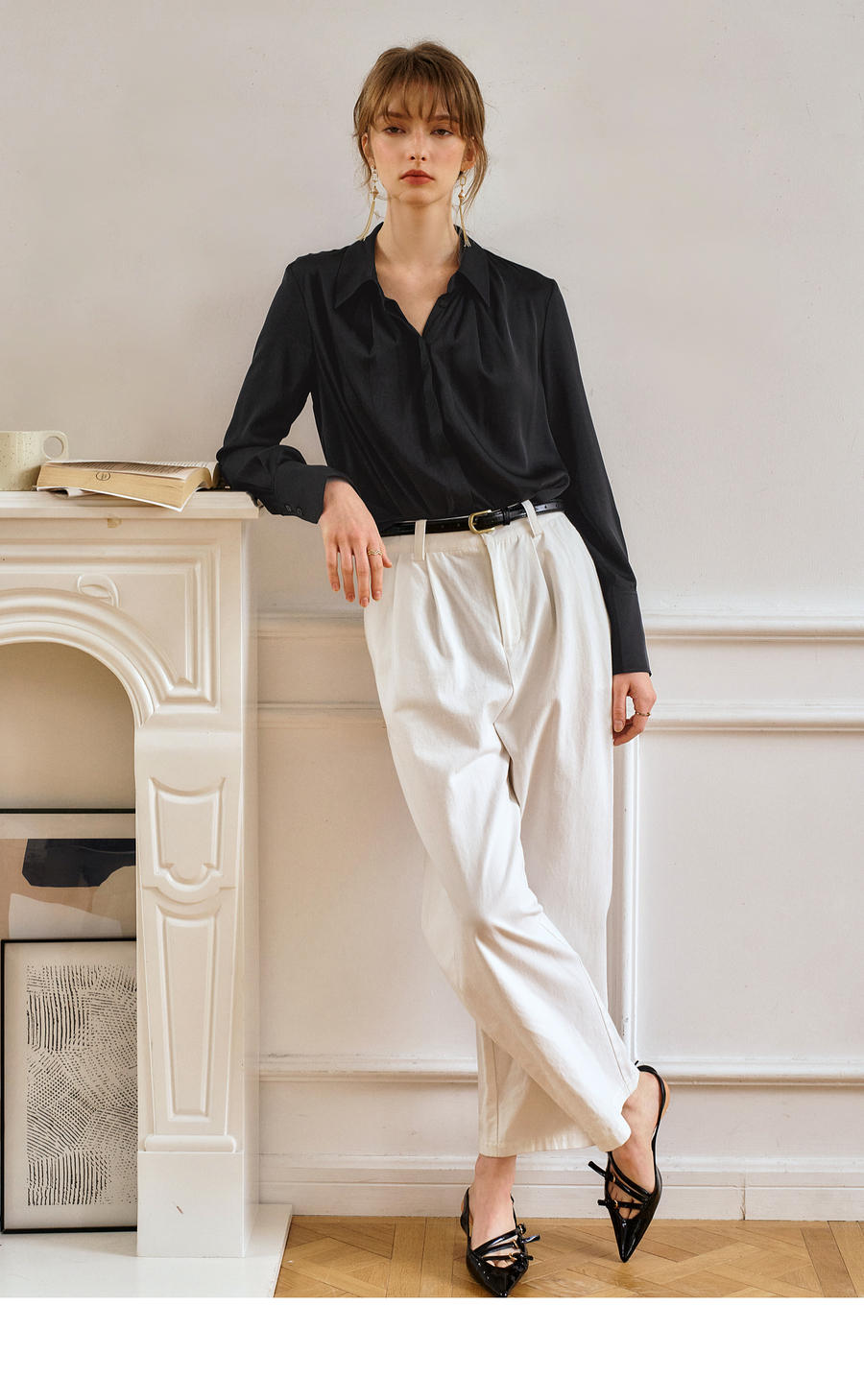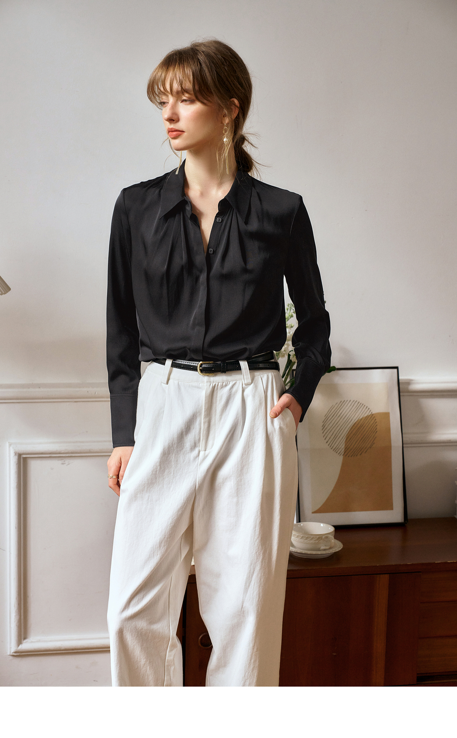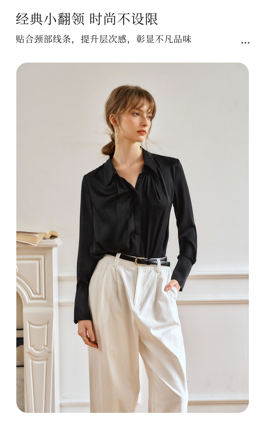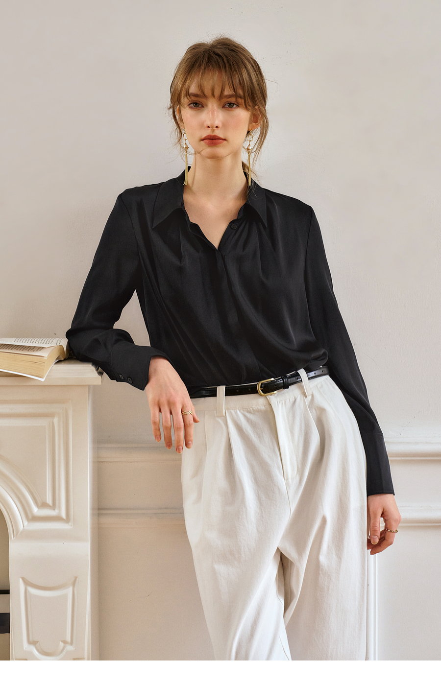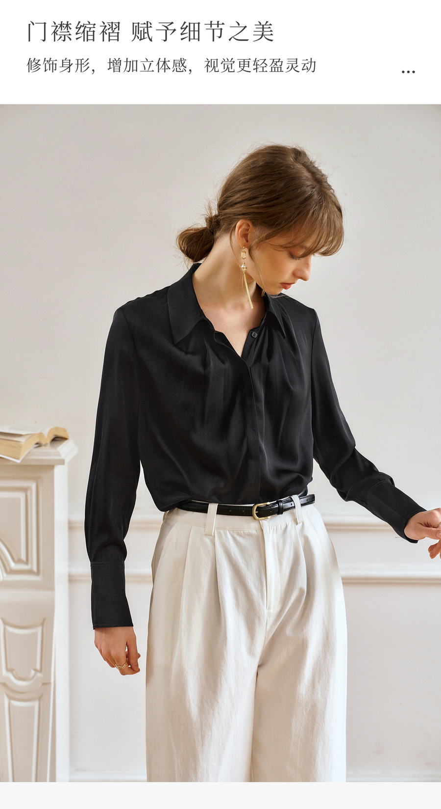 OLrain欧芮儿黑色长袖衬衫女春季2025年新款通勤知性缎面气质衬衣