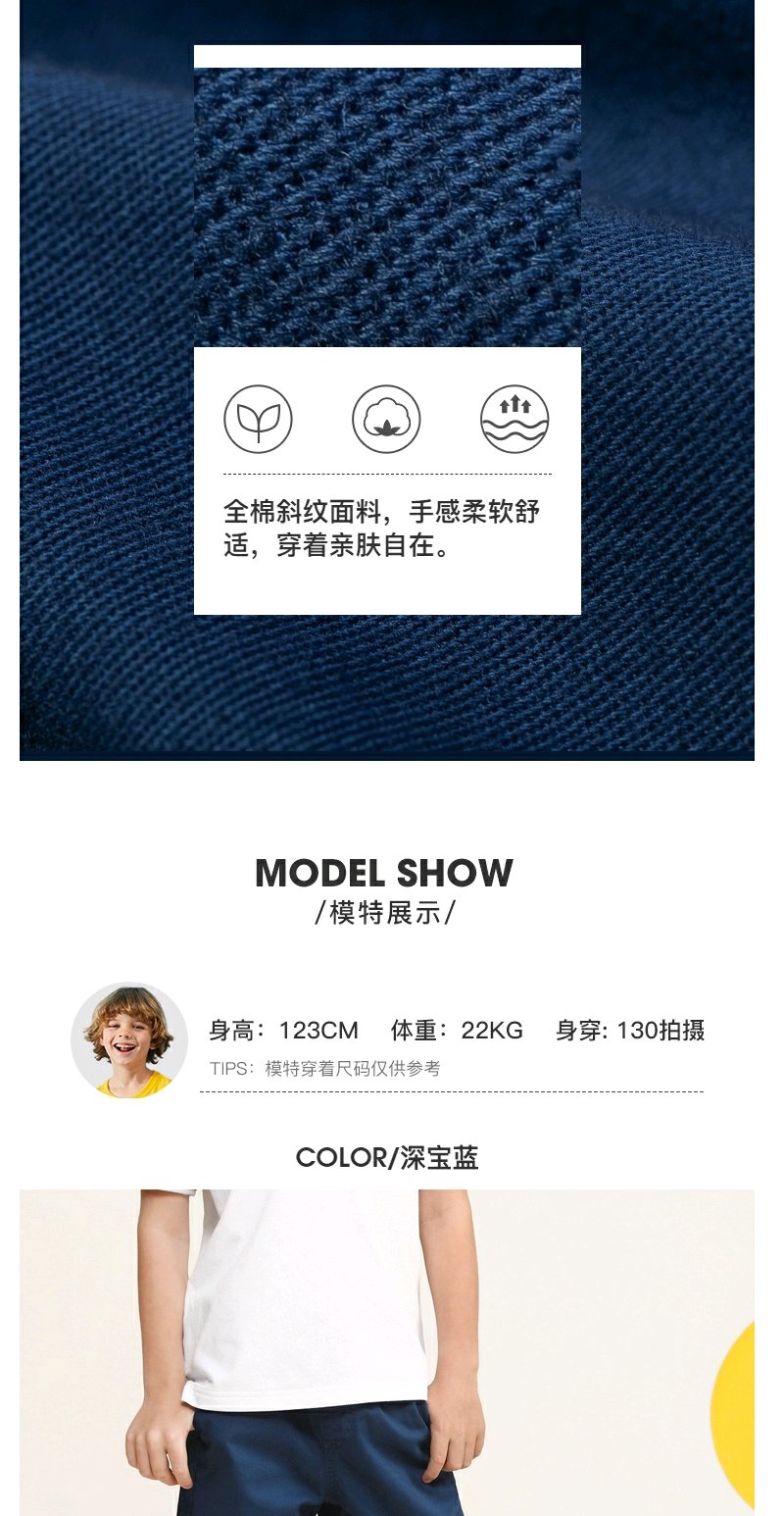 班尼路童装纯色男童短裤纯棉宽松儿童五分裤外穿休闲