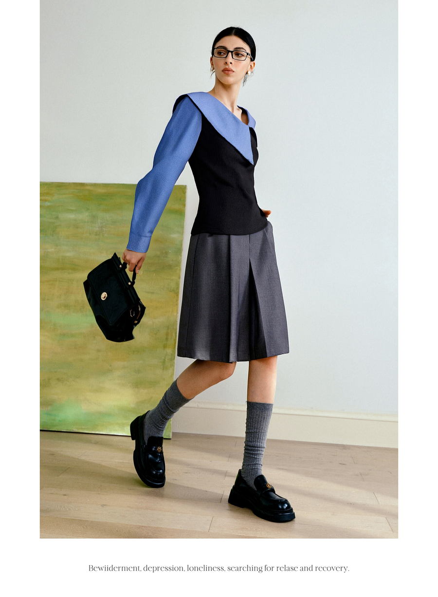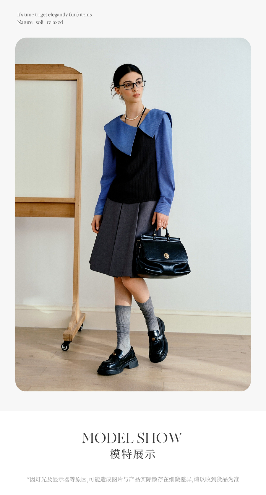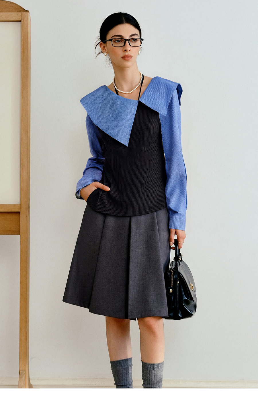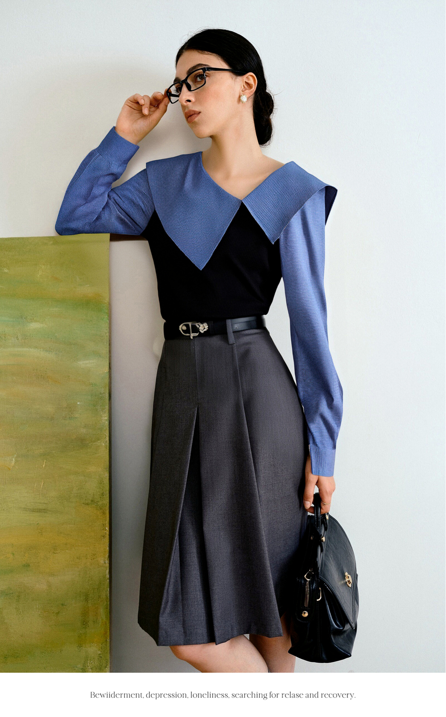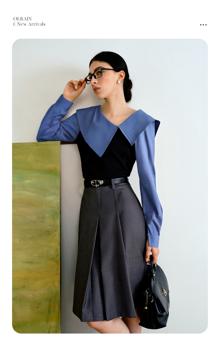 OLrain欧芮儿2025新款女秋季通勤假两件设计感格子套头长袖衬衫