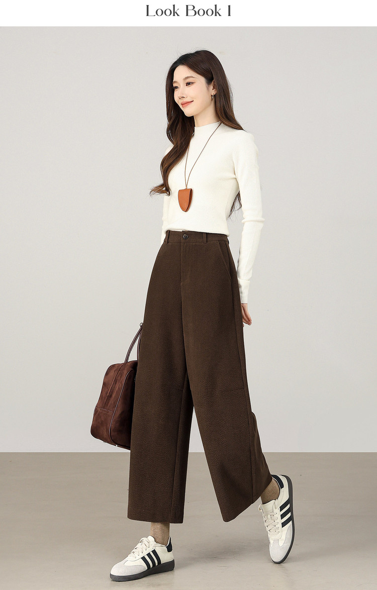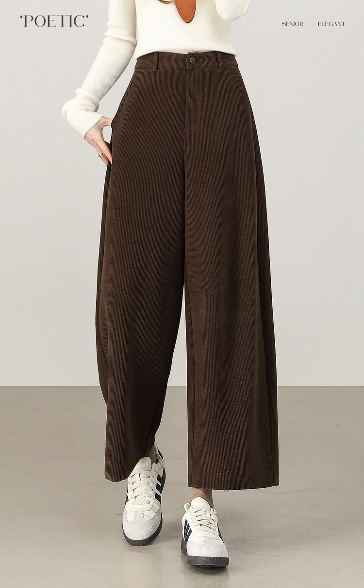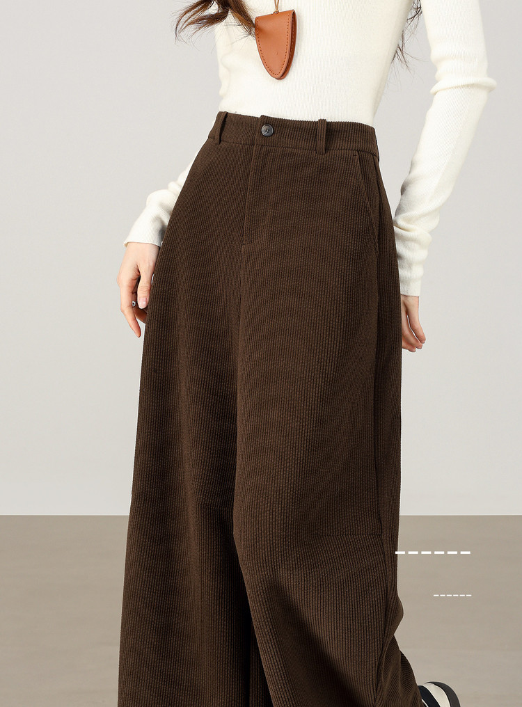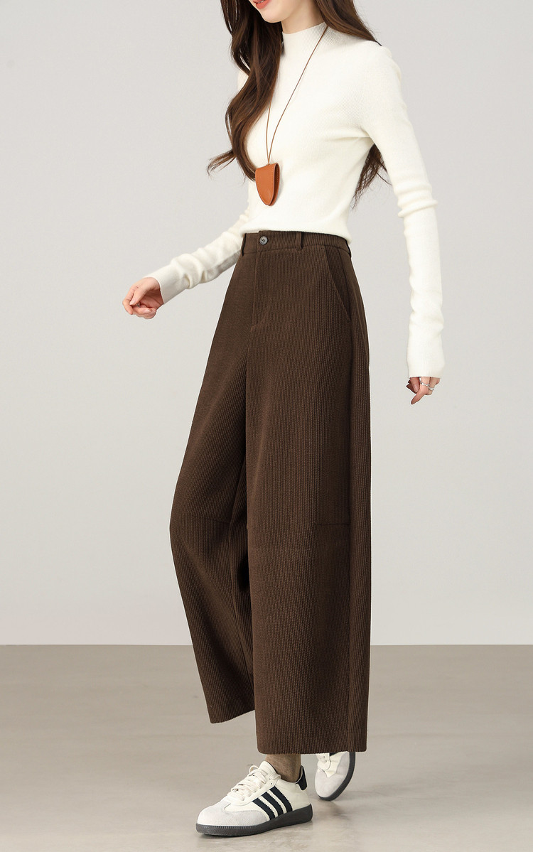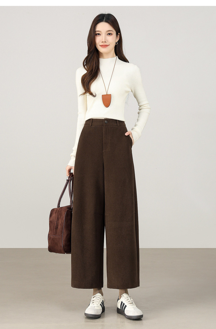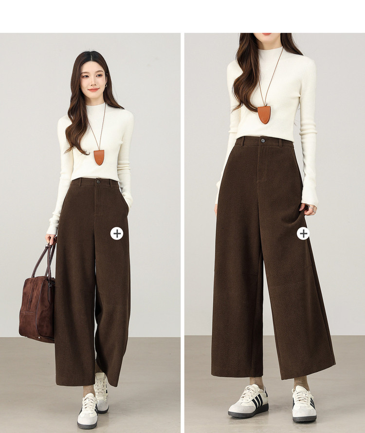 【12/31新品】熙世界棕咖色九分梧桐裤女宽松阔腿裤冬季加厚小个子坑条直筒裤子