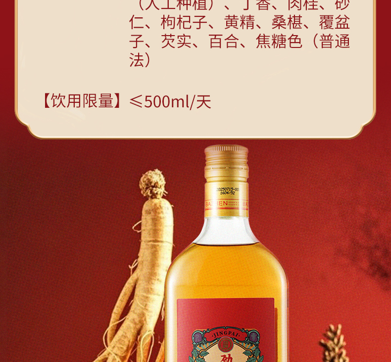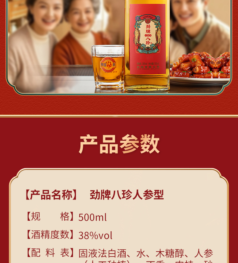 【焕新升级】38°中国劲酒八珍人参型500ml