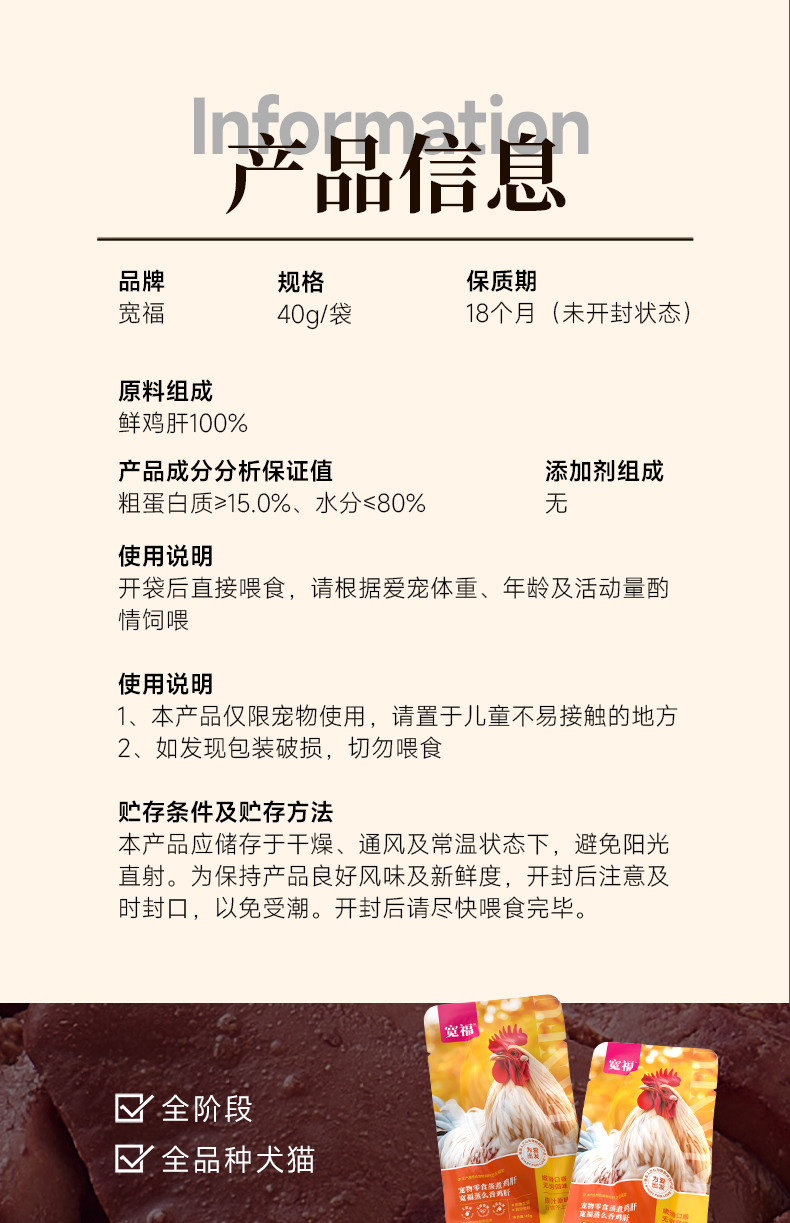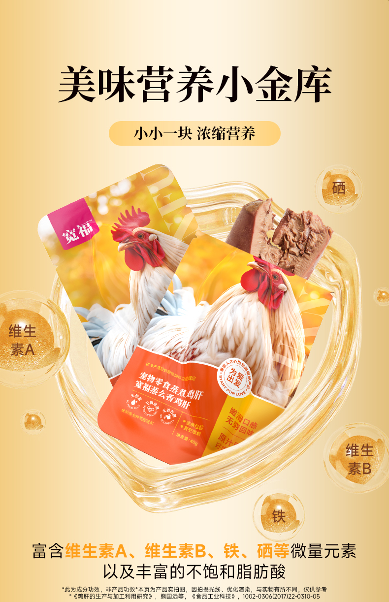 【蒸么香鸡肝】宽福 整个鲜鸡肝高温蒸煮锁住营养 动物蛋白细腻易消化 独立包装方便喂食携带