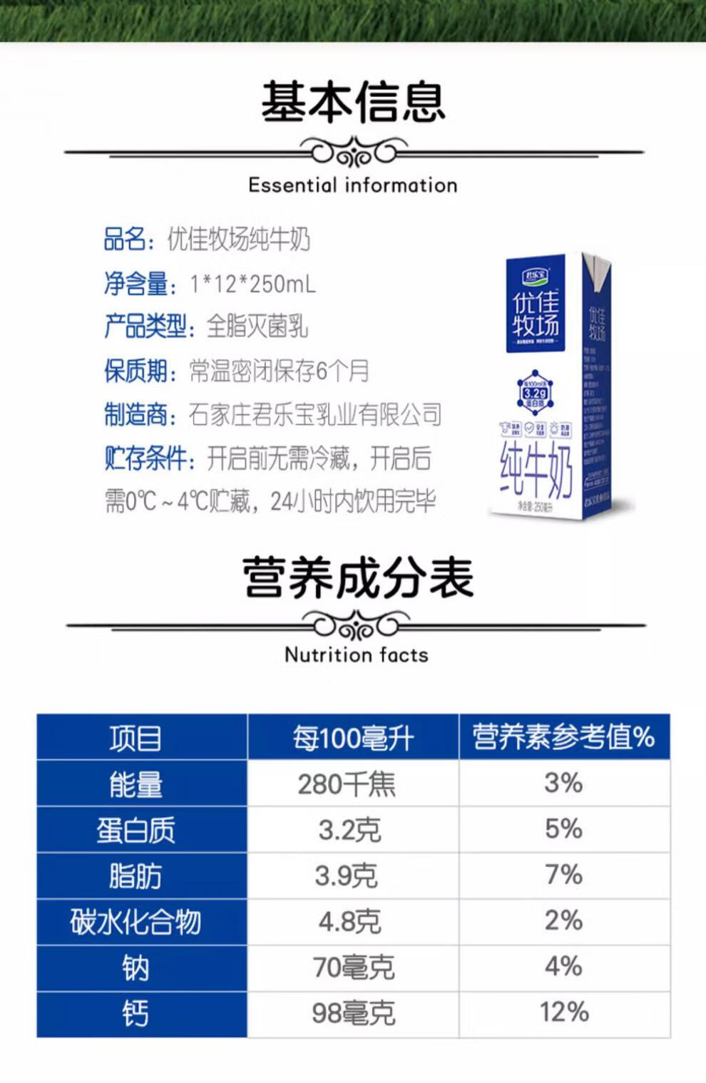 君乐宝 优佳牧场纯牛奶250ml*12 3箱