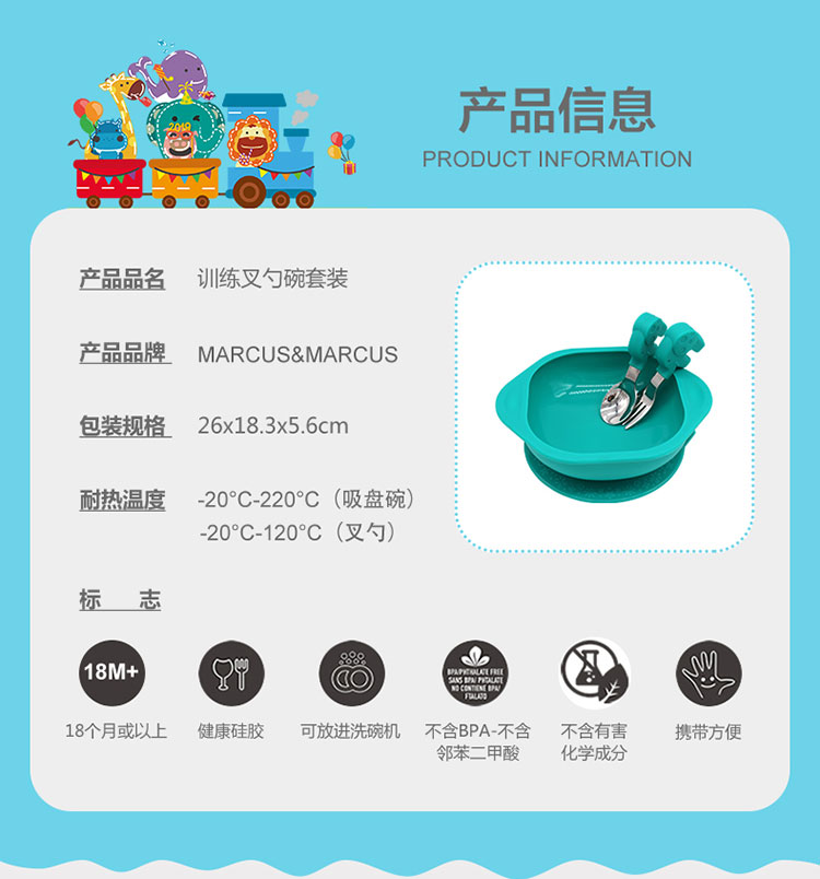 *Marcus 马库狮餐具爆款幼儿训练叉勺套装自主进食训练叉勺碗套装(餐具属个人卫生产品,一经拍下不支持七天无理由退换货)