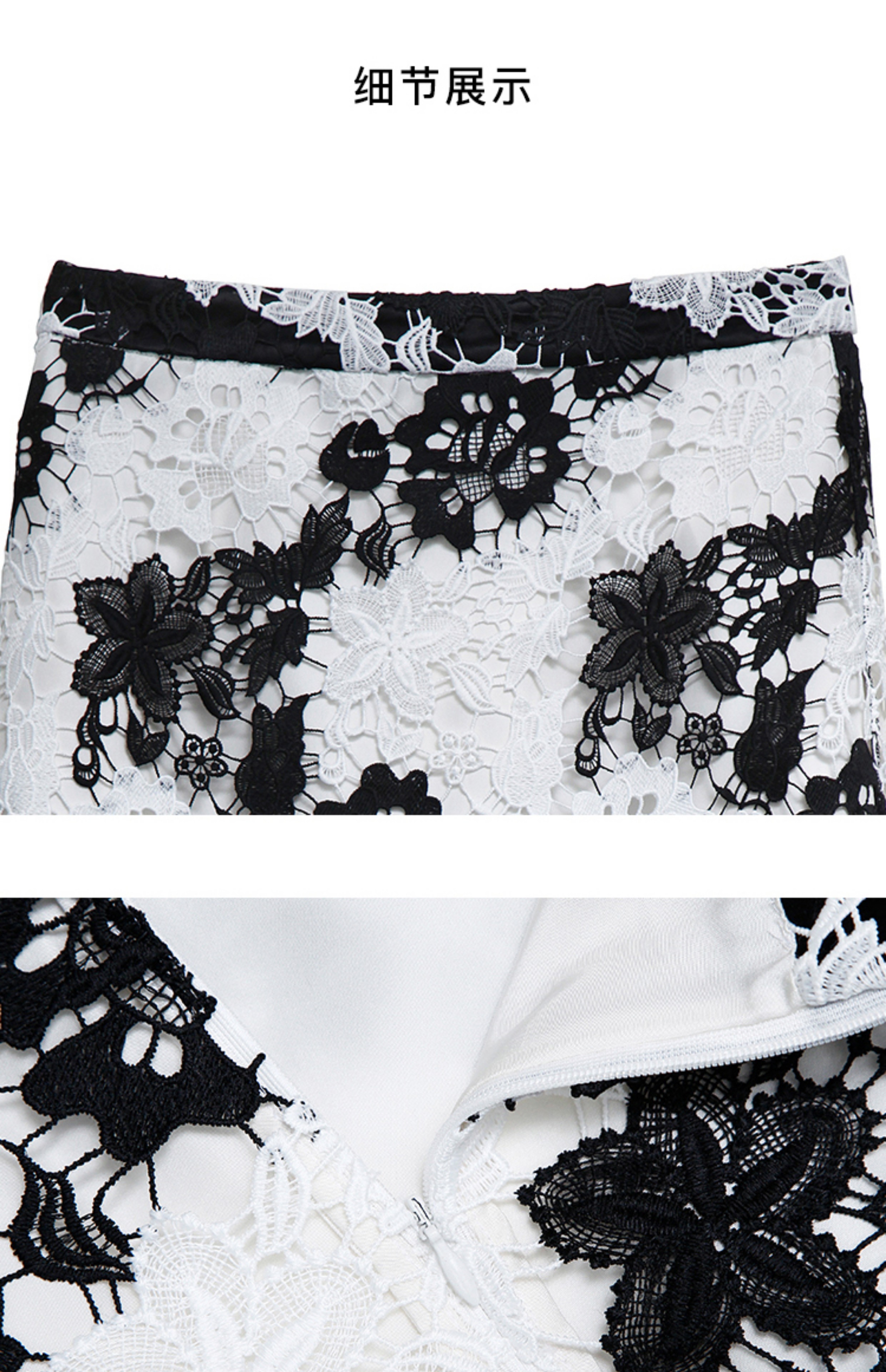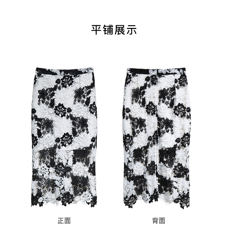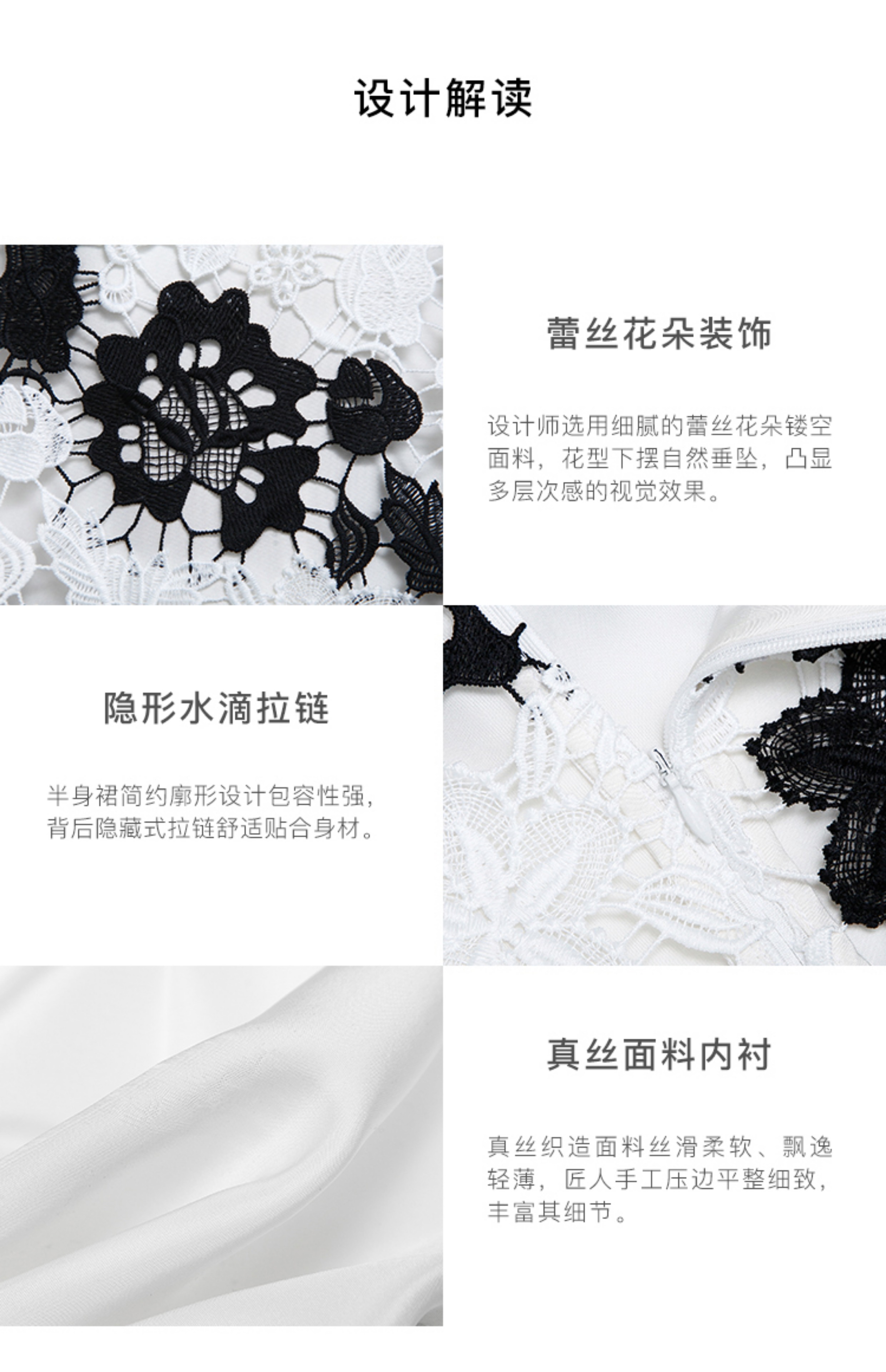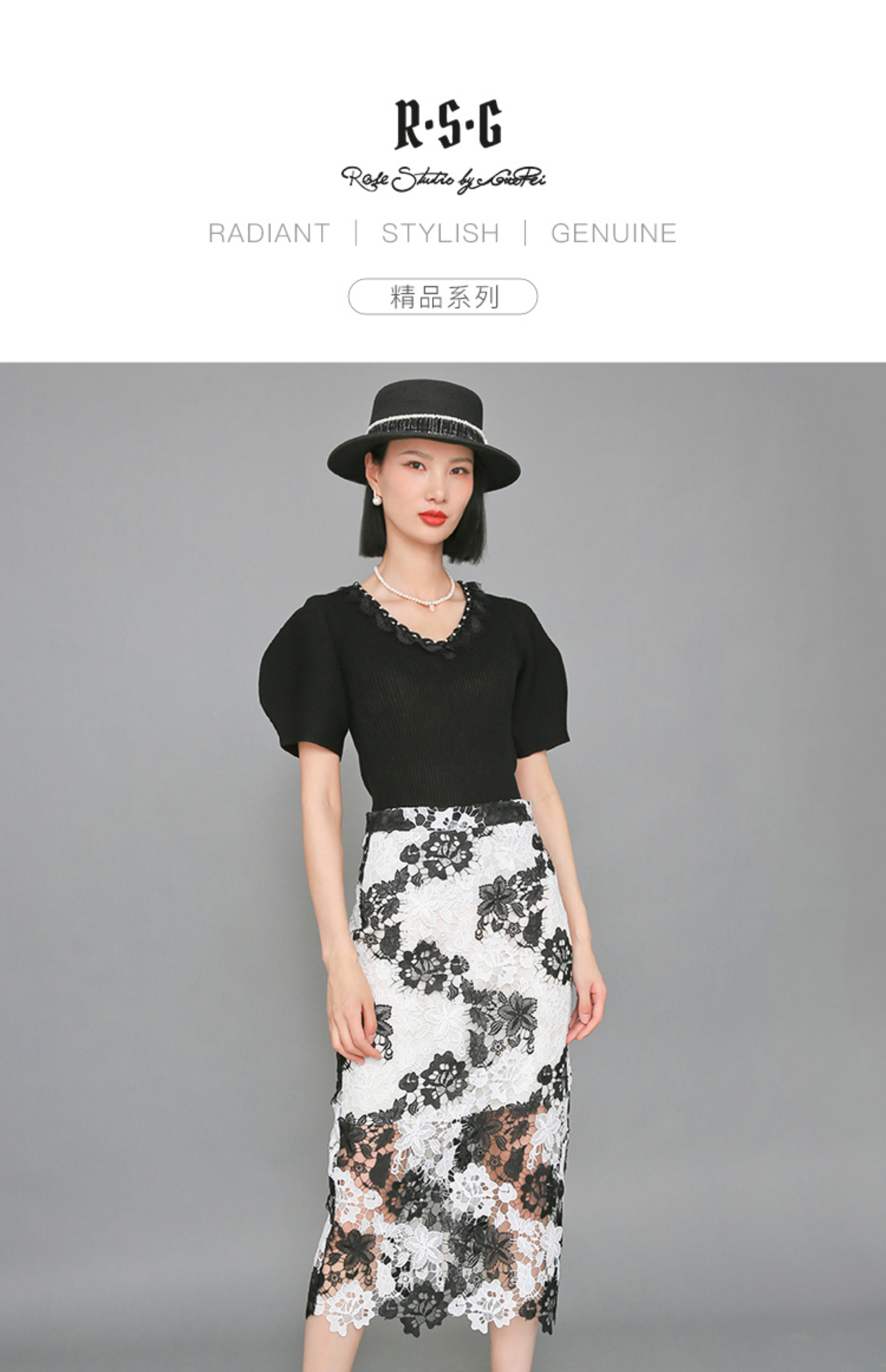 RSG郭培成衣品牌撞色拼接设计感蕾丝花朵优雅半身裙收腰包臀