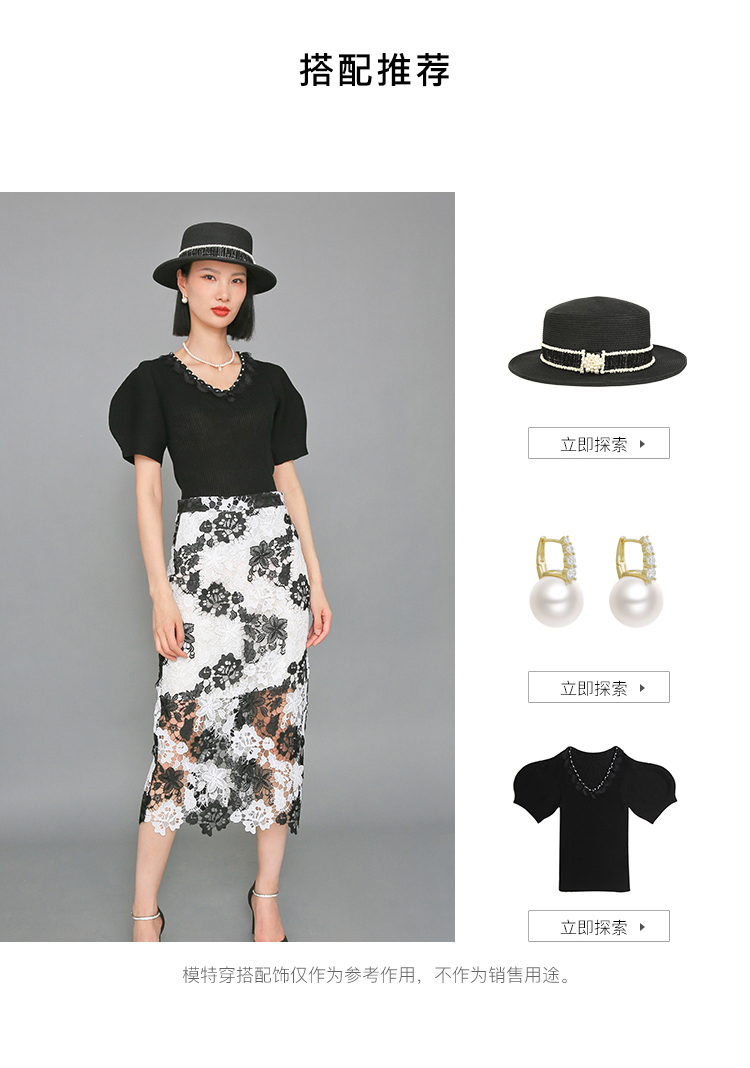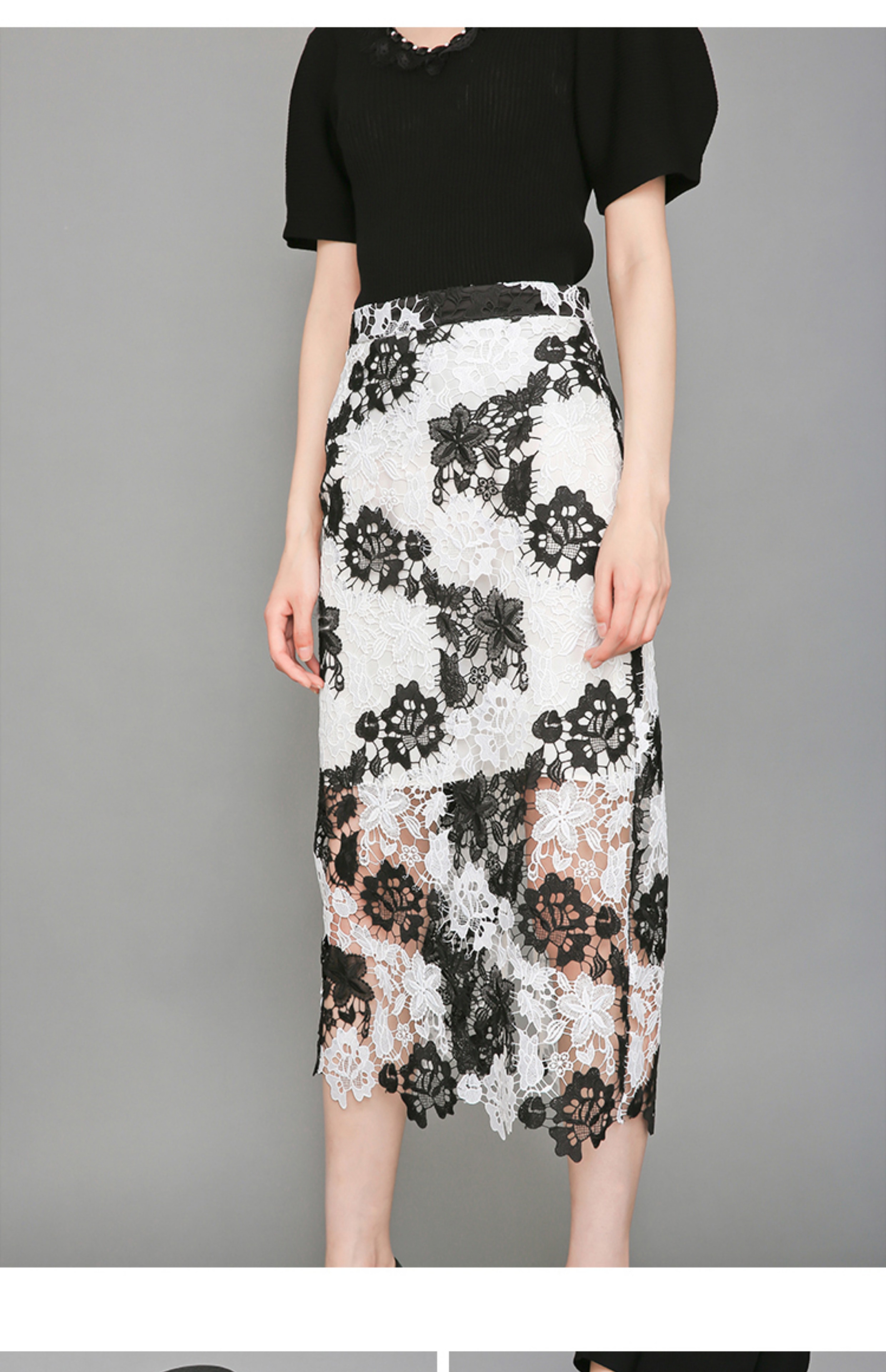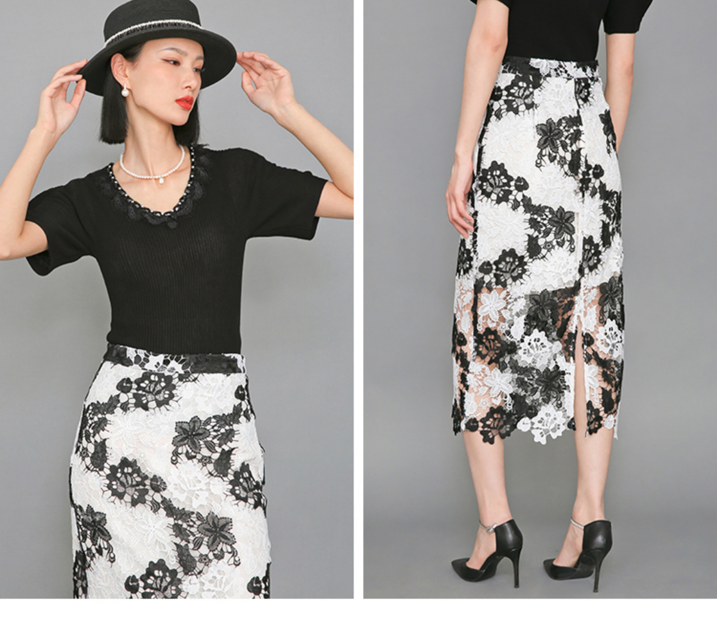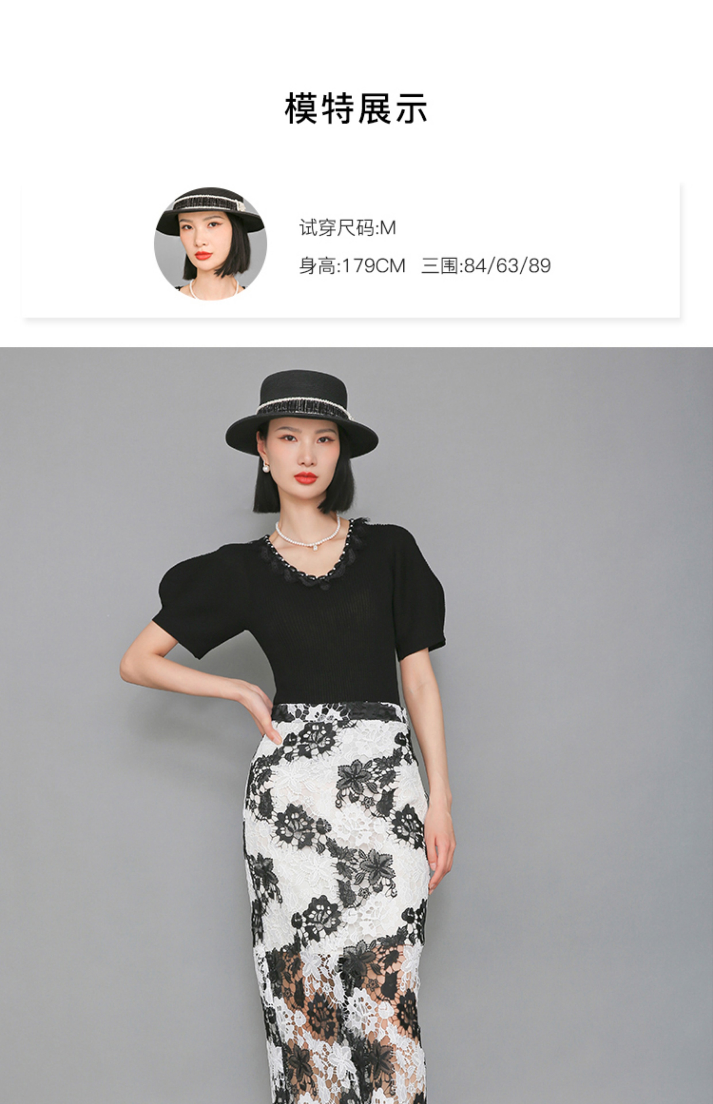 RSG郭培成衣品牌撞色拼接设计感蕾丝花朵优雅半身裙收腰包臀