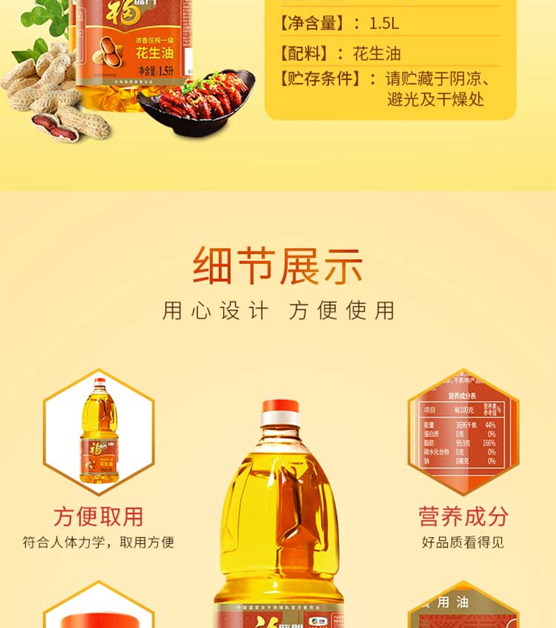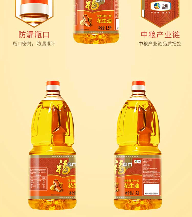 福临门浓香压榨一级花生油1.5L